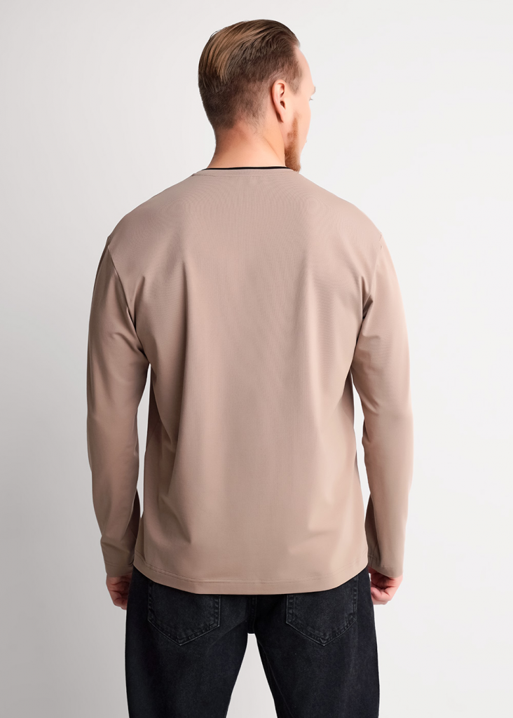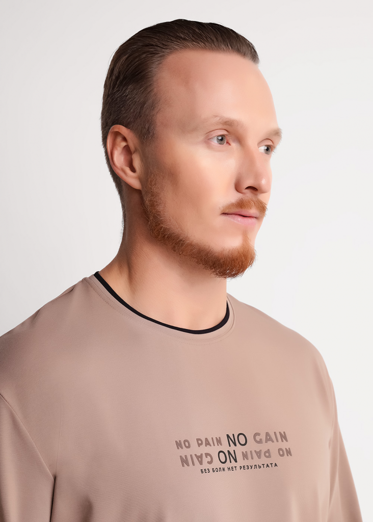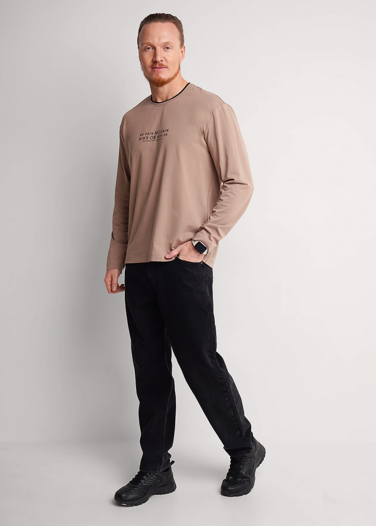 Мужской лонгслив прямого кроя с длинным рукавом и округлым вырезом с имитацией двойной горловины. Дополнен принтом на груди. Универсальная модель для повседневного стиля.