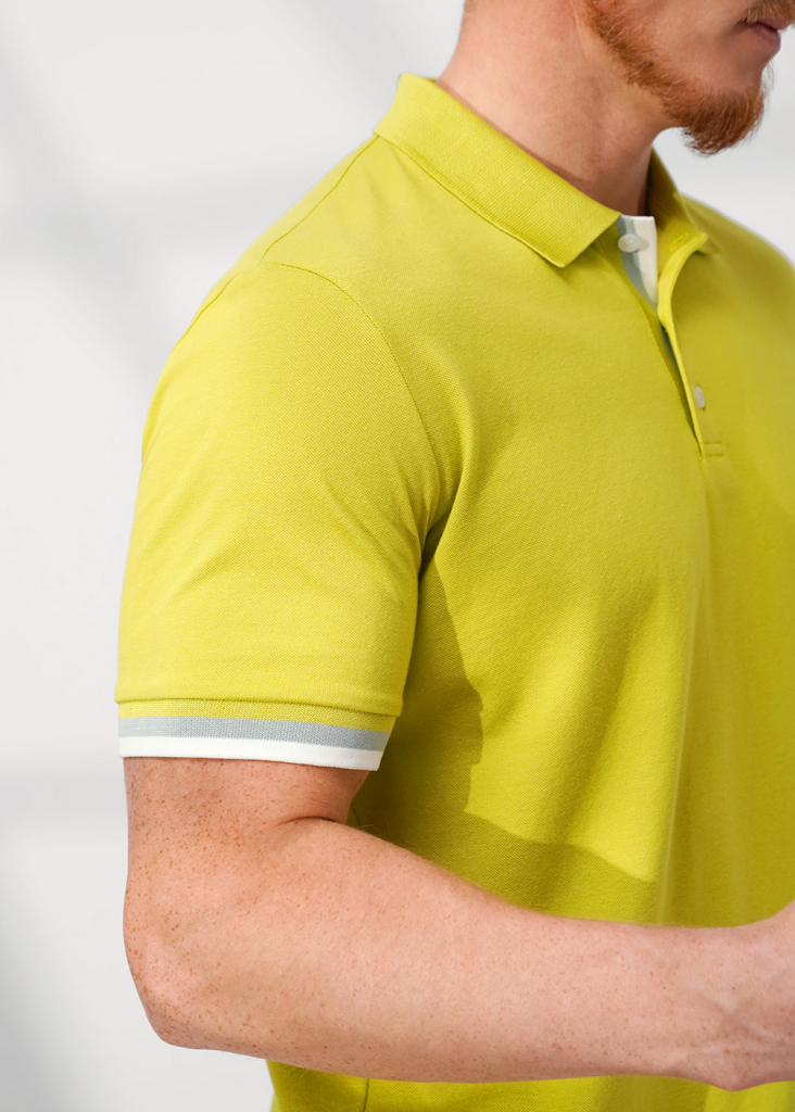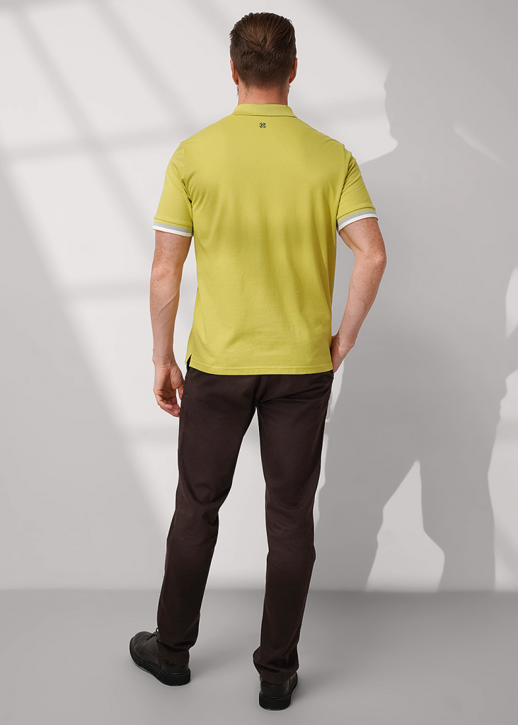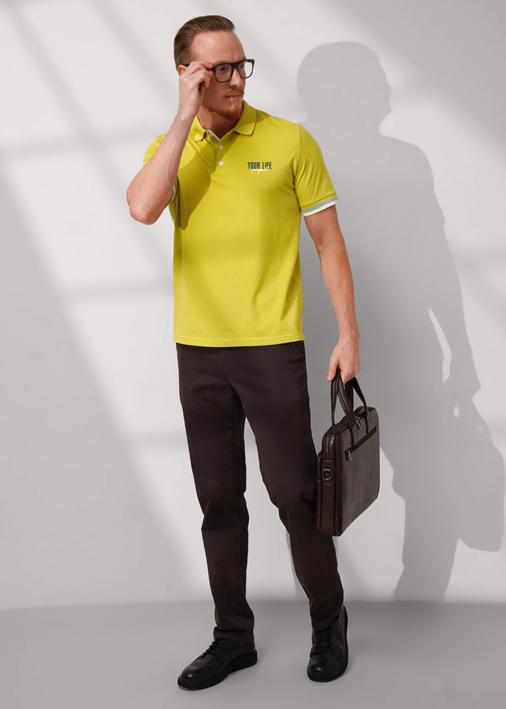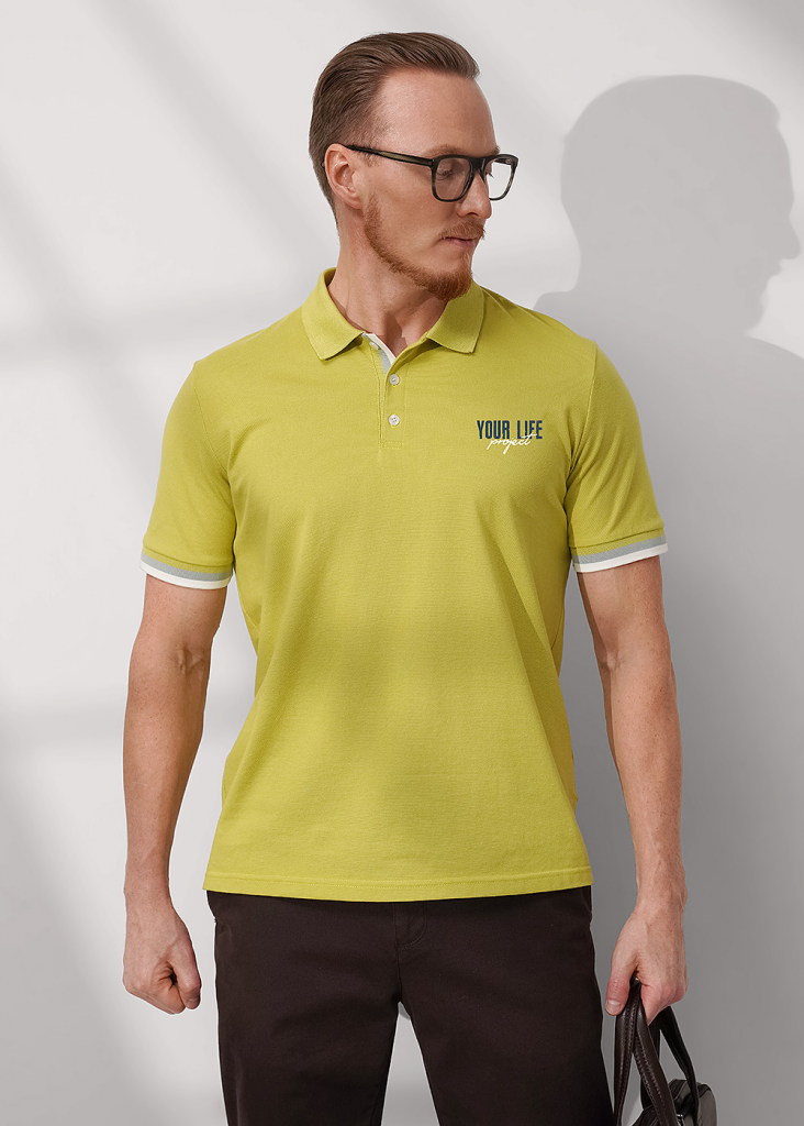 Футболка-поло с вязаными отделками из фактурного полотна "пике". Модель с коротким рукавом на манжете и функциональной планкой на 3 пуговицы. Модель можно дополнить брюками или джинсами. Отличный вариант для встреч с друзьями.