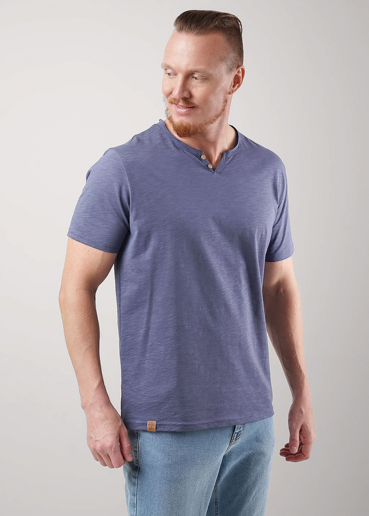 Футболка мужская с округлой горловиной и планкой из фактурного полотна "флам". Данная модель прекрасно комбинируется с джинсами или шортами. Отличное решение на лето для прогулок с друзьями или поездки на отдых.