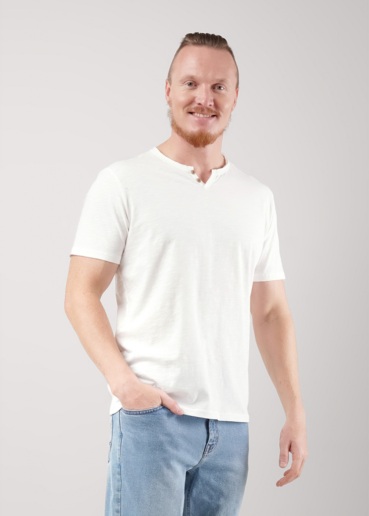 Футболка мужская с округлой горловиной и планкой из фактурного полотна "флам". Данная модель прекрасно комбинируется с джинсами или шортами. Отличное решение на лето для прогулок с друзьями или поездки на отдых.