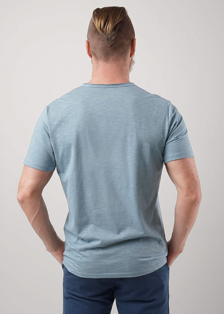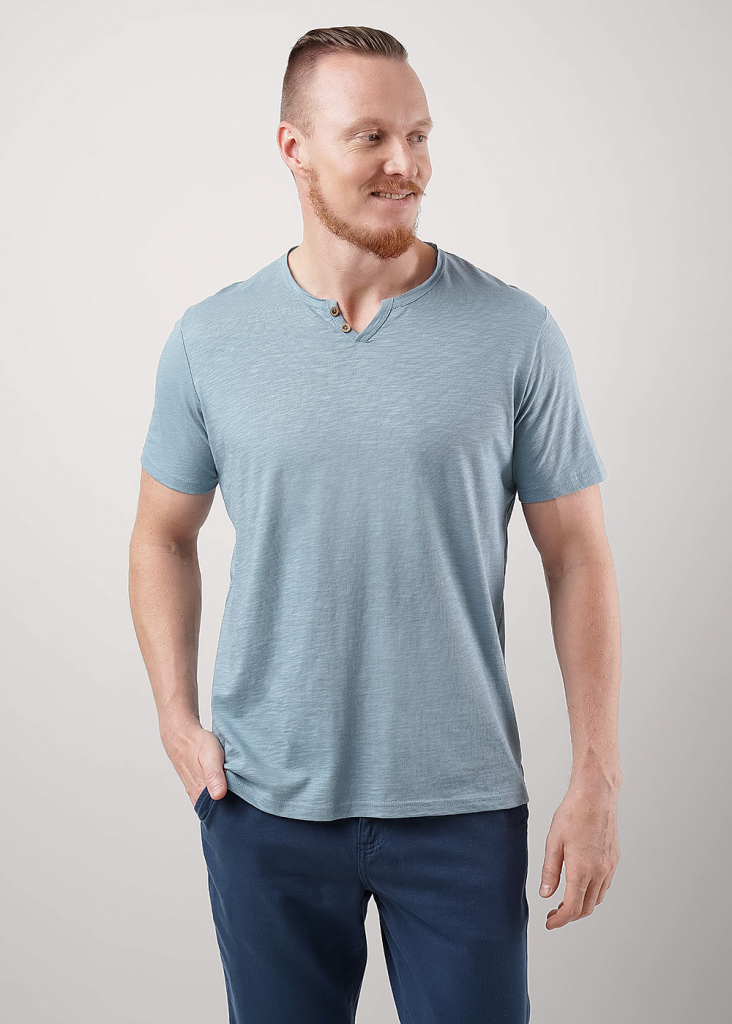 Футболка мужская с округлой горловиной и планкой из фактурного полотна "флам". Данная модель прекрасно комбинируется с джинсами или шортами. Отличное решение на лето для прогулок с друзьями или поездки на отдых.