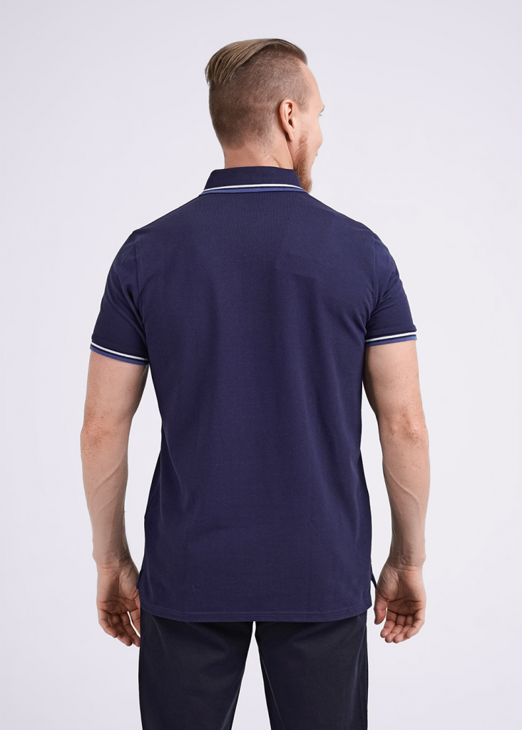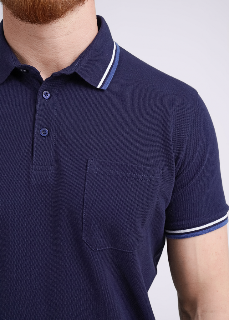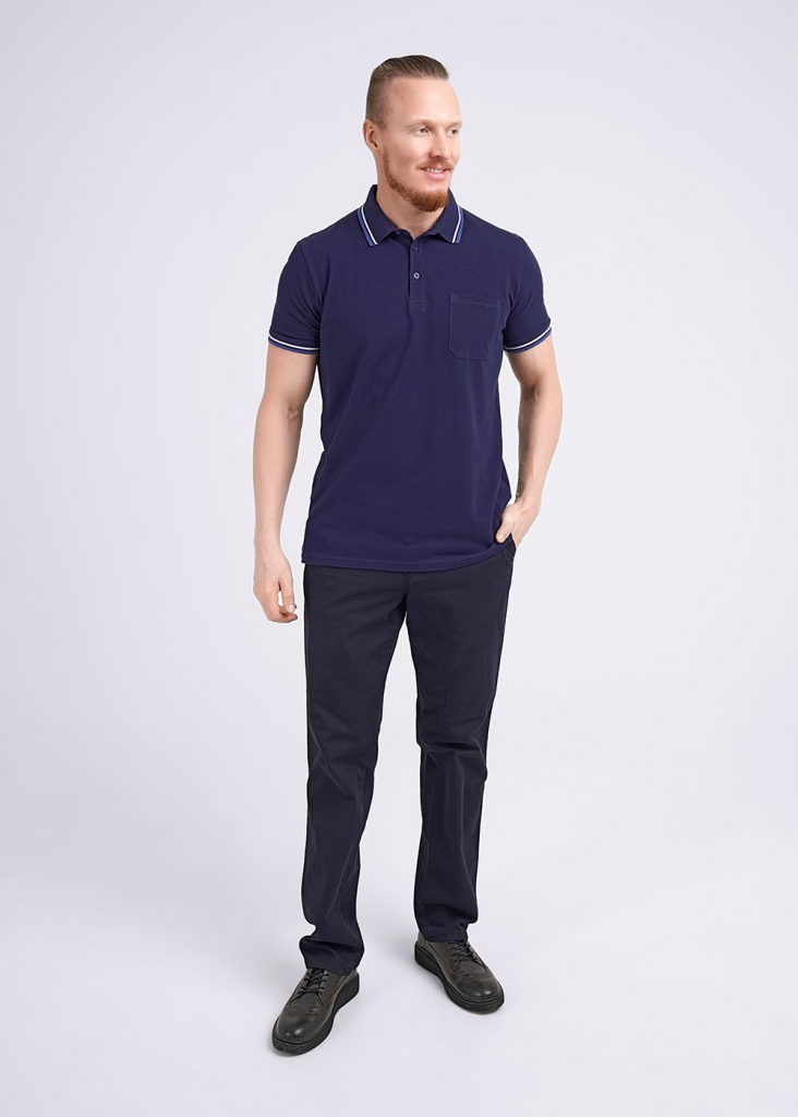 Джемпер с коротким рукавом среднего объема. Воротник отложной вязаный, планка на петли и пуговицы, накладной карман. Низ рукава на вязаной манжете.