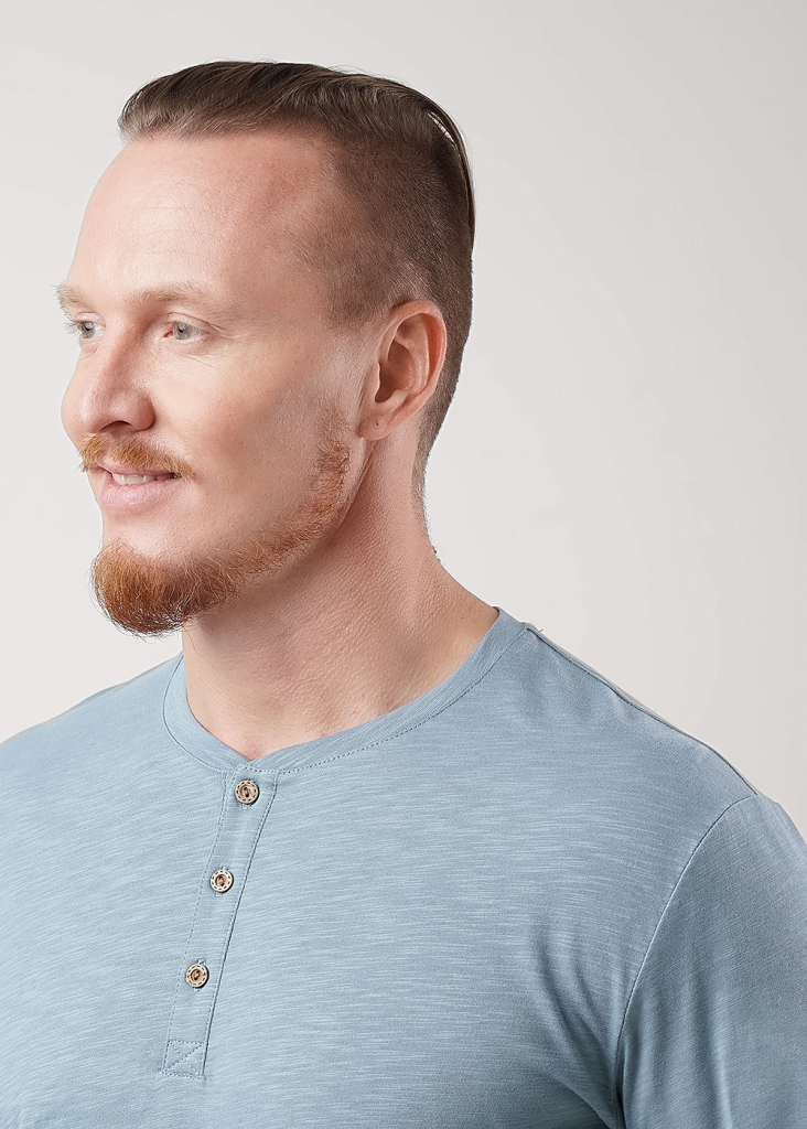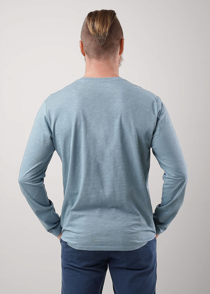 Лонгслив мужской с длинным рукавом, округлой горловиной на планке из фактурного полотна "флам". Изделие дополнено имиджевой фурнитурой. Данная модель прекрасно комбинируется с джинсами или шортами благодаря своей универсальности.