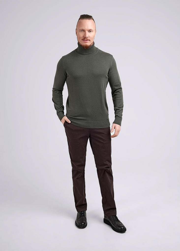 Классическая вязаная водолазка из смесовой пряжи с хлопковым составом удачно впишется в повседневный гардероб современного мужчины, привнося тепло, комфорт и элегантность одновременно.