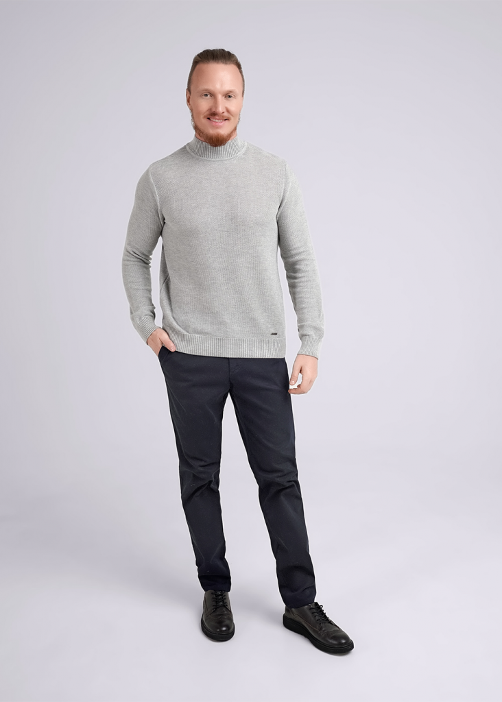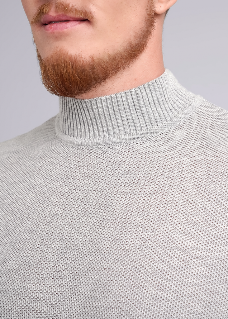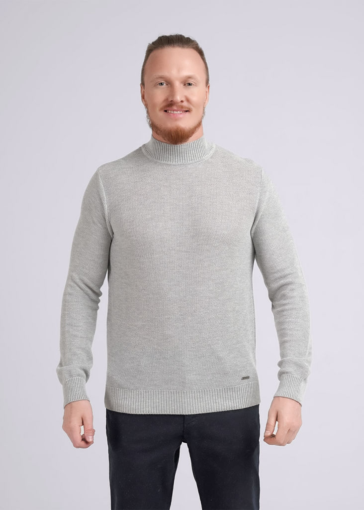 Вязаная водолазка с воротником стойкой, с фактурным переплетением из смесовой пряжи с хлопком. Удачно впишется в повседневный гардероб современного мужчины, принося тепло, комфорт и элегантность одновременно.