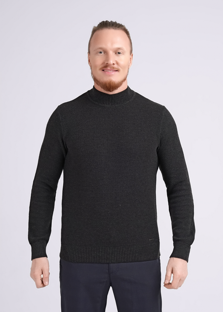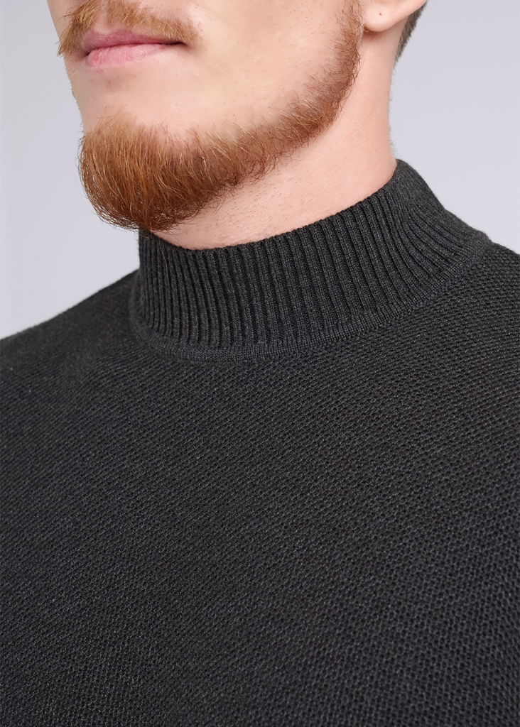 Вязаная водолазка с воротником стойкой, с фактурным переплетением из смесовой пряжи с хлопком. Удачно впишется в повседневный гардероб современного мужчины, принося тепло, комфорт и элегантность одновременно.