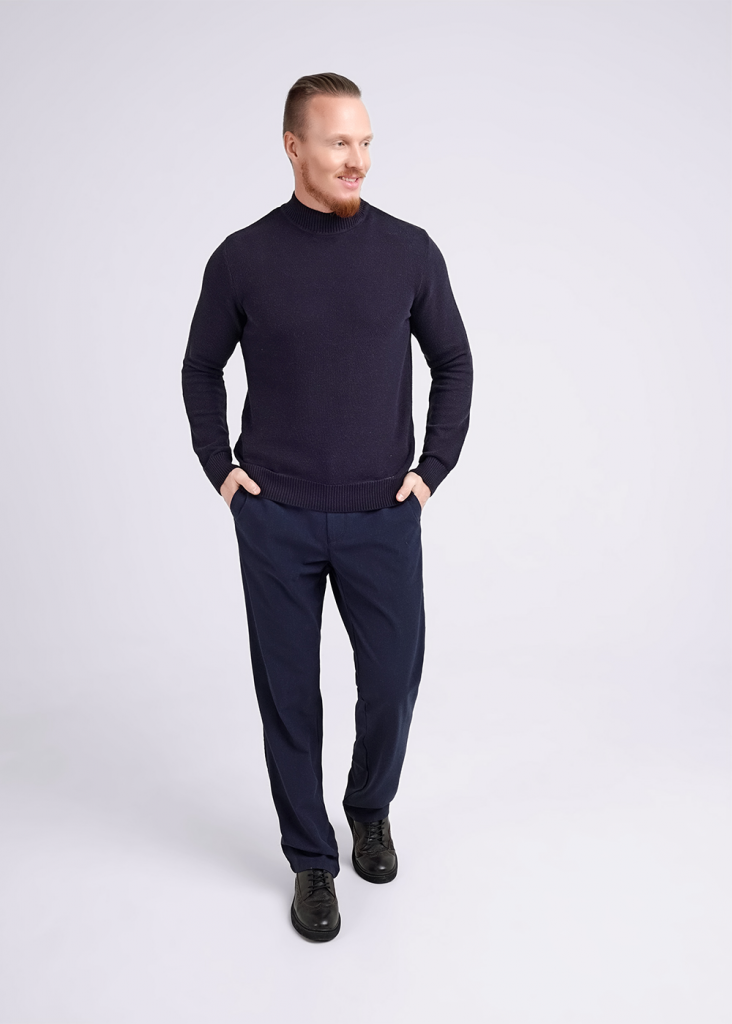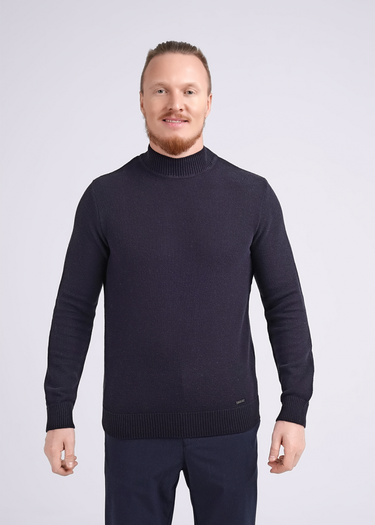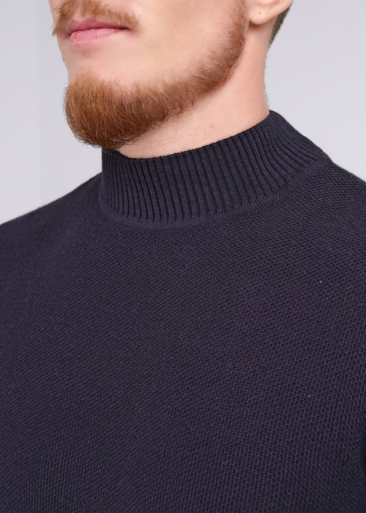 Вязаная водолазка с воротником стойкой, с фактурным переплетением из смесовой пряжи с хлопком. Удачно впишется в повседневный гардероб современного мужчины, принося тепло, комфорт и элегантность одновременно.