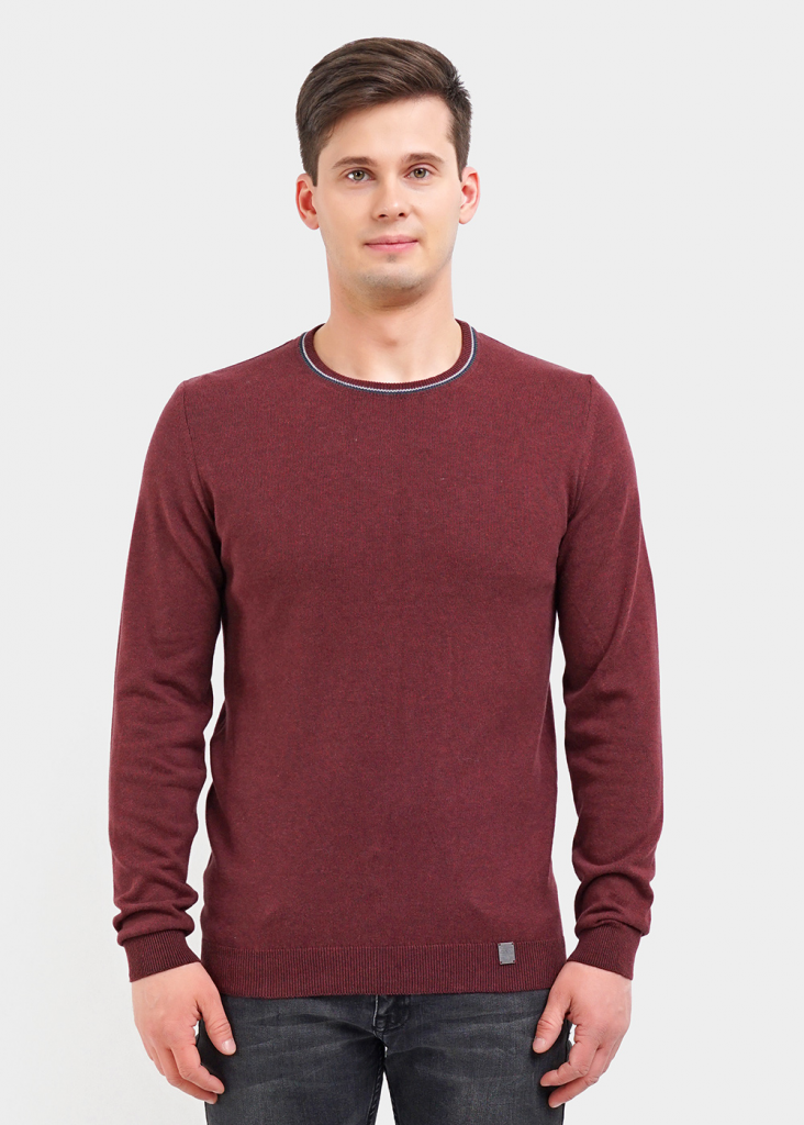 Джемпер прямого силуэта с круглым вырезом горловины. По бейке горловины полосы контрастного цвета. По спинке стильная обтачка контрастного цвета из поплина . Изделие выполнено из натуральной пряжи. Хорошо смотрится с джинсами или брюками.