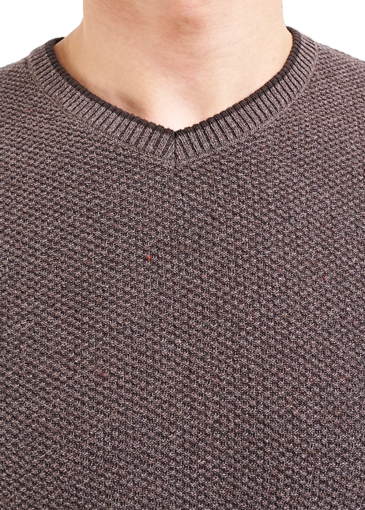 Базовый мужской джемпер Выполнен фактурным переплетением из пряжи с большим содержанием хлопка, с V-образным вырезом. Провязанная резинка по низу изделия и рукавам. Лаконичный джемпер - основа гардероба современного мужчины.