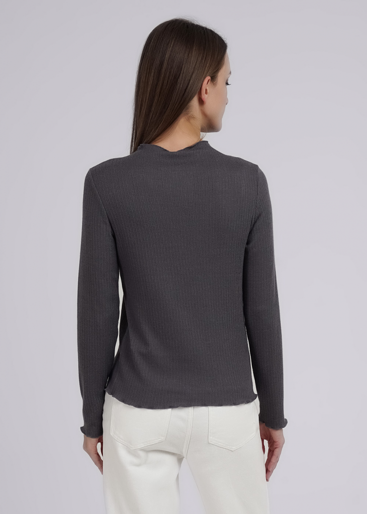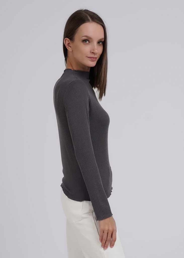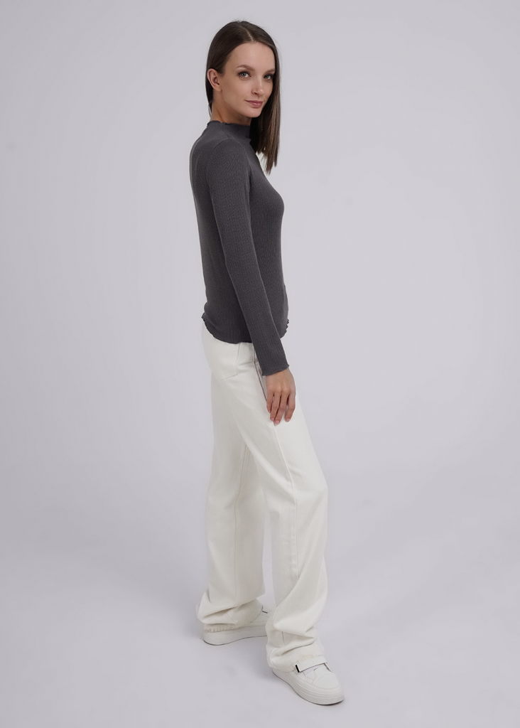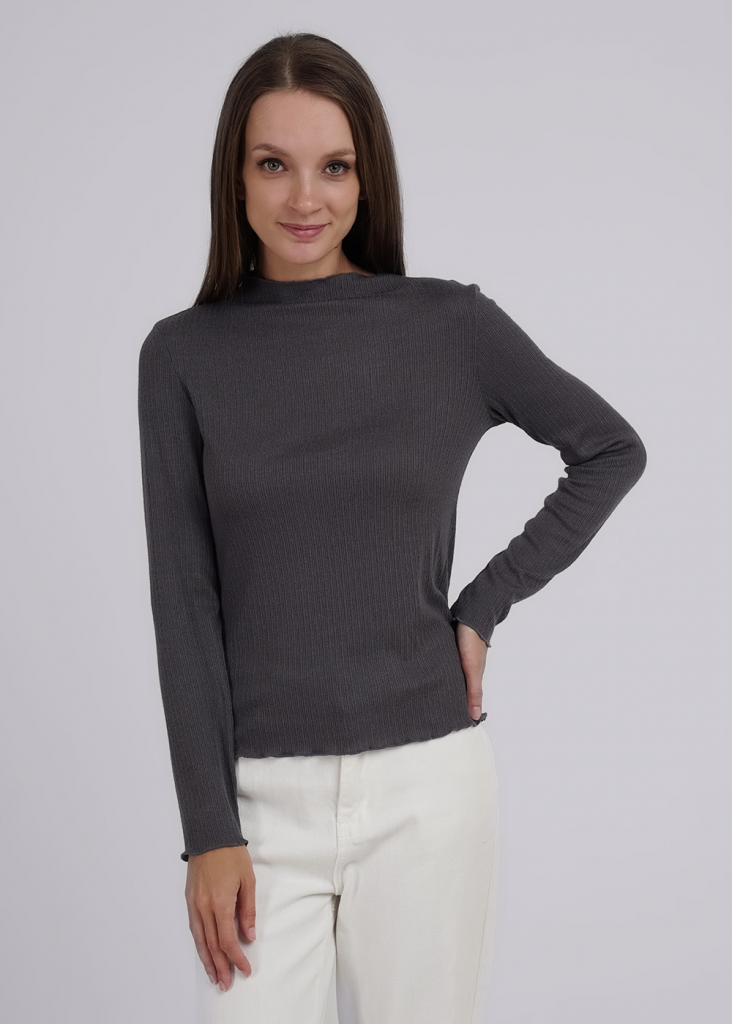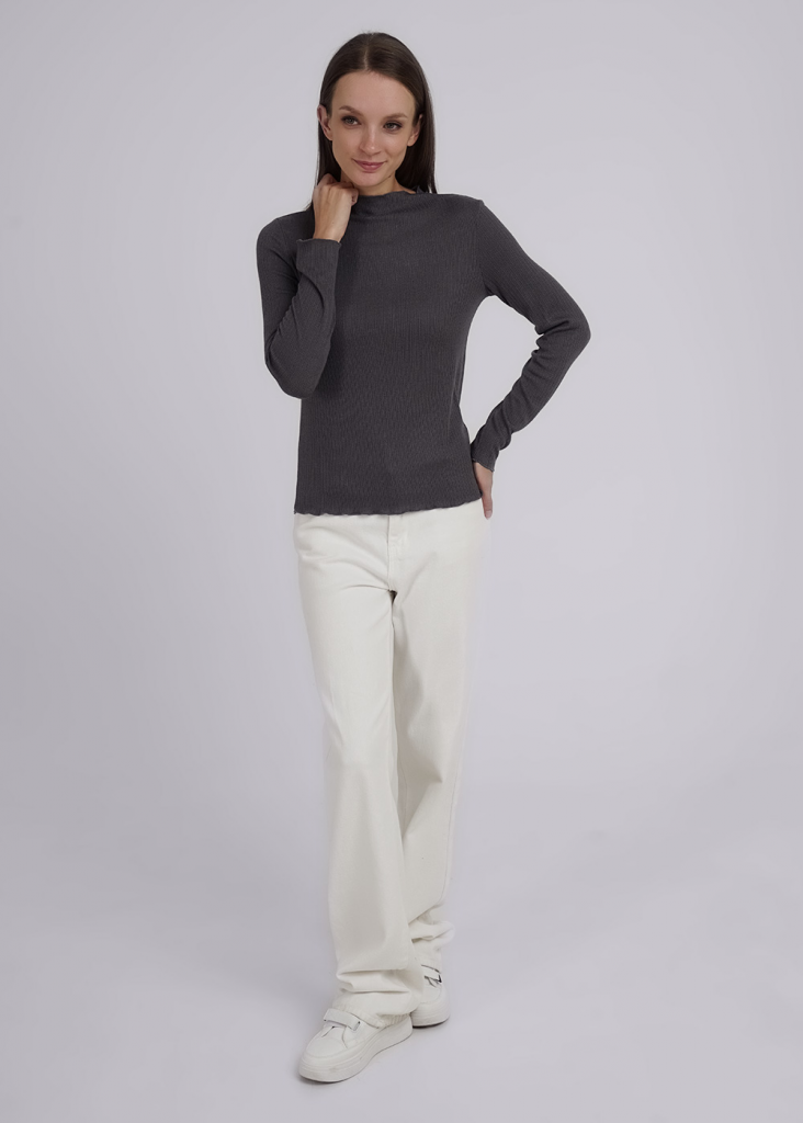 Джемпер из трикотажного поливискозного полотна кашкорсе с эластаном. Прямого силуэта. Длинный втачной рукав. По горловине цельвыкроенная стойка. По горловине, низу рукава и изделия обработка мелкий оверлок.