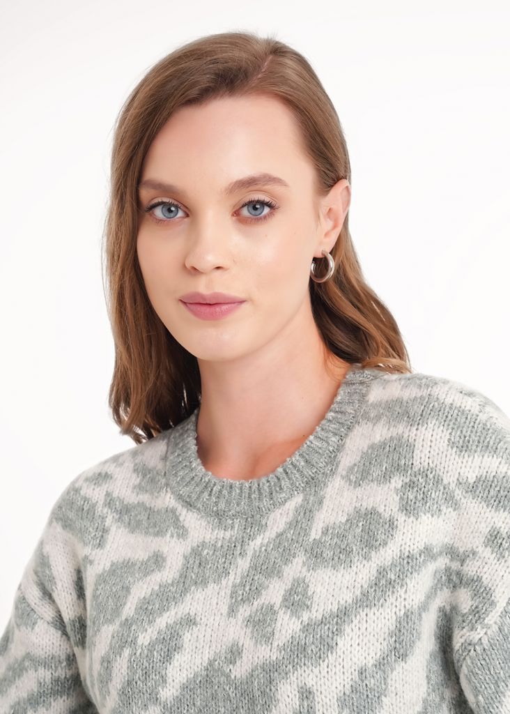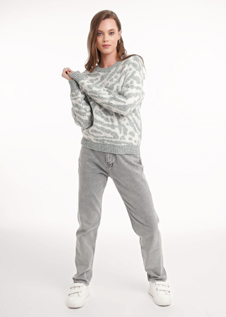 CLE Джемпер жен. 154484/188апх, меланж зелёный/меланж серый