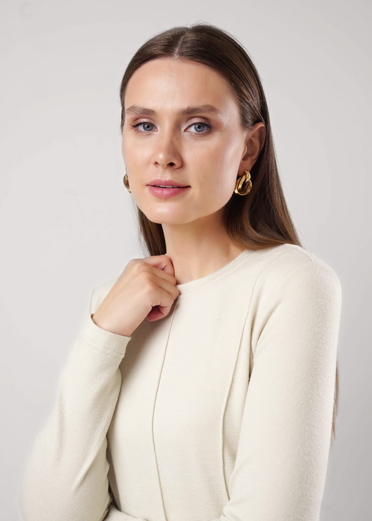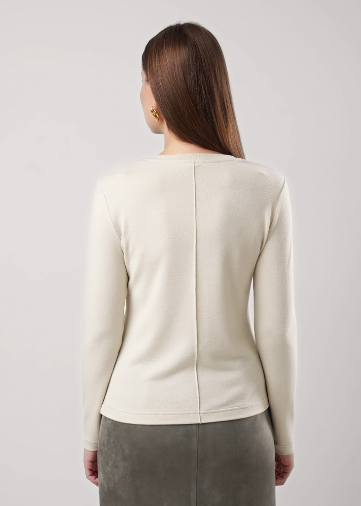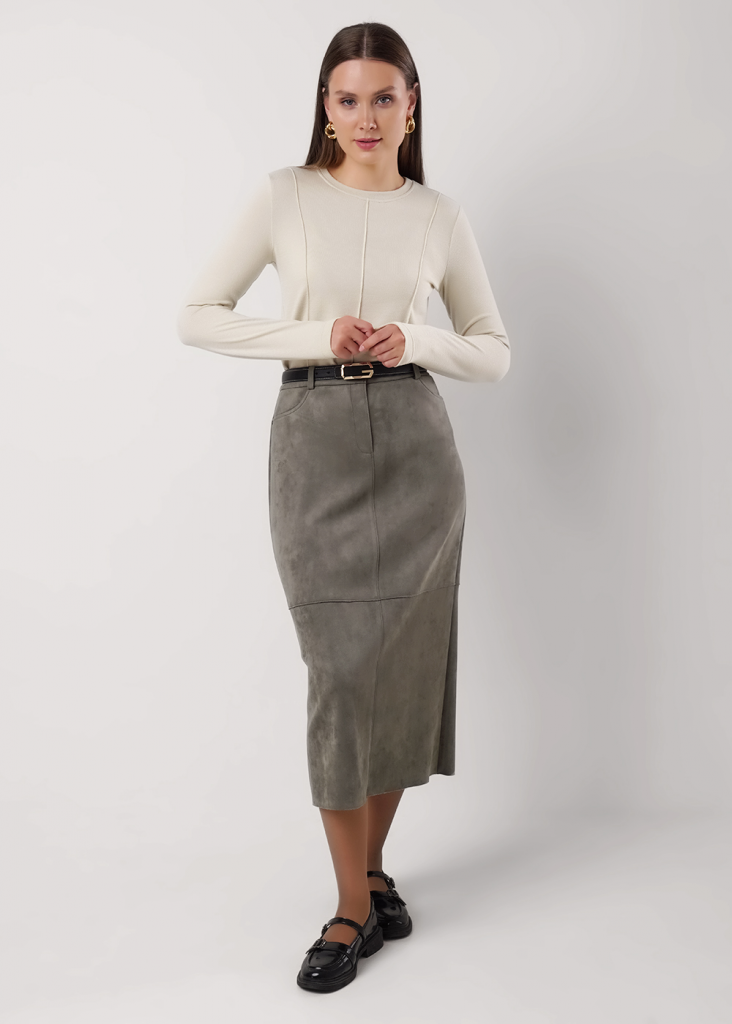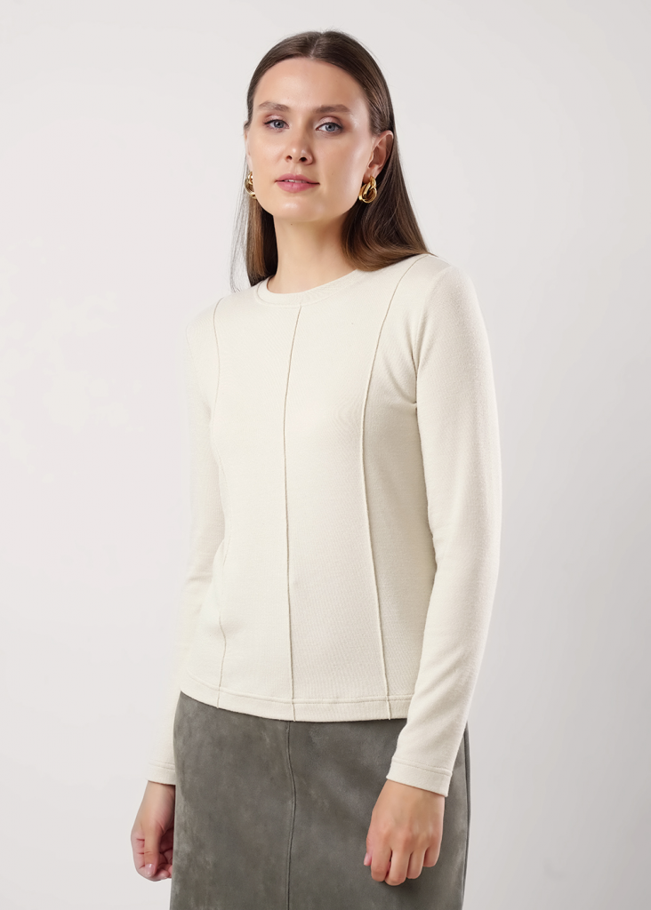 Джемпер прямого силуэта из трикотажного полотна вязанная вискоза. Втачной длинный рукав. Округлая горловина с обтачкой. По переду и спинке декоративные защипы. .
