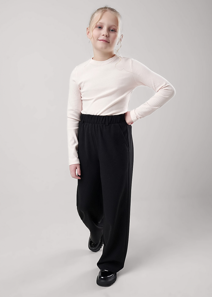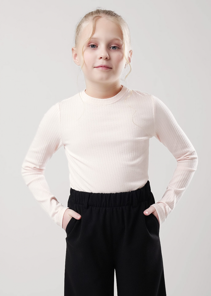 Базовый лонгслив из лапши станет отличным дополнением к вашему гардеробу! Комфортная посадка по фигуре, актуальный объём и практичная цветовая гамма- то, что нужно для создания повседневного школьного образа и отличного настроения!