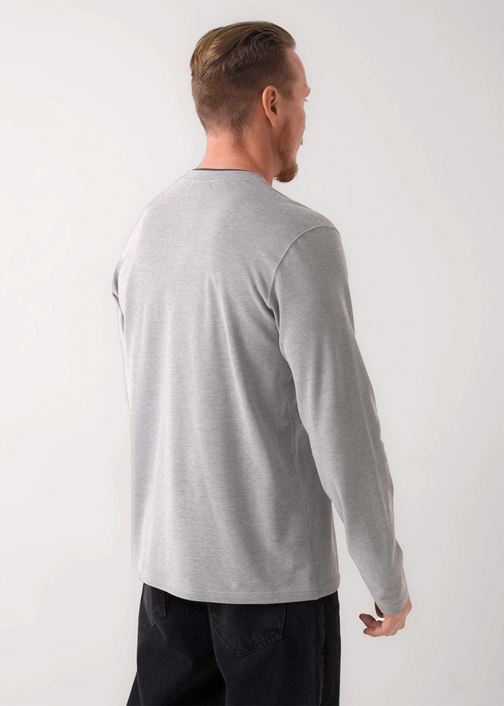 Лонгслив из трикотажного полотна пике с имитацией двойной горловины. Модель дополнена имиджевой фурнитурой. Данное изделие отличное дополнение к брюкам или джинсам. Прекрасно подойдёт для встречи с друзьями или похода на работу.