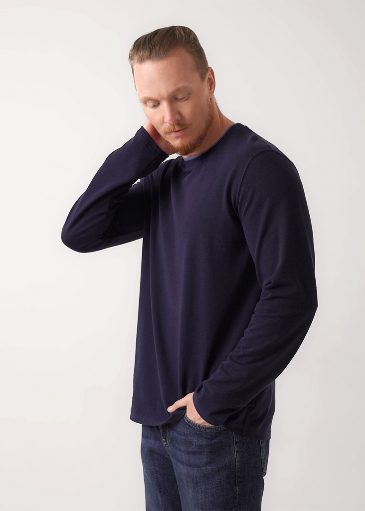 Лонгслив из трикотажного полотна пике с имитацией двойной горловины. Модель дополнена имиджевой фурнитурой. Данное изделие отличное дополнение к брюкам или джинсам. Прекрасно подойдёт для встречи с друзьями или похода на работу.