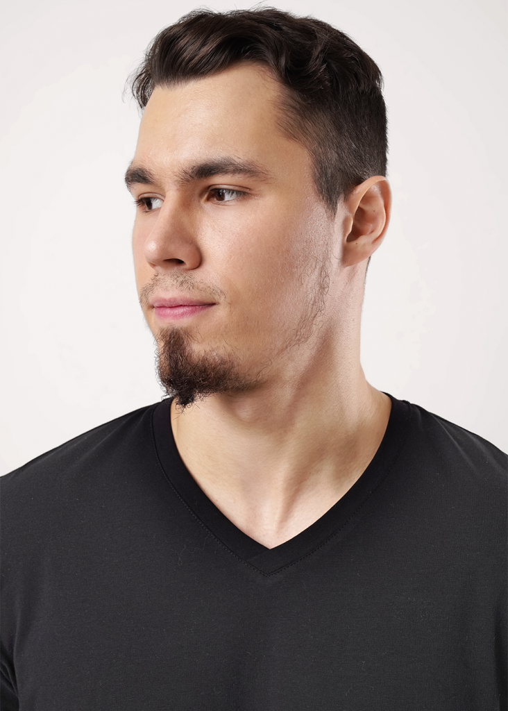 Фуфайка базовой посадки, v-образный вырез горловины, короткий рукав.