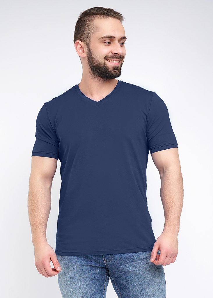 Фуфайка базовой посадки, v-образный вырез горловины, короткий рукав.