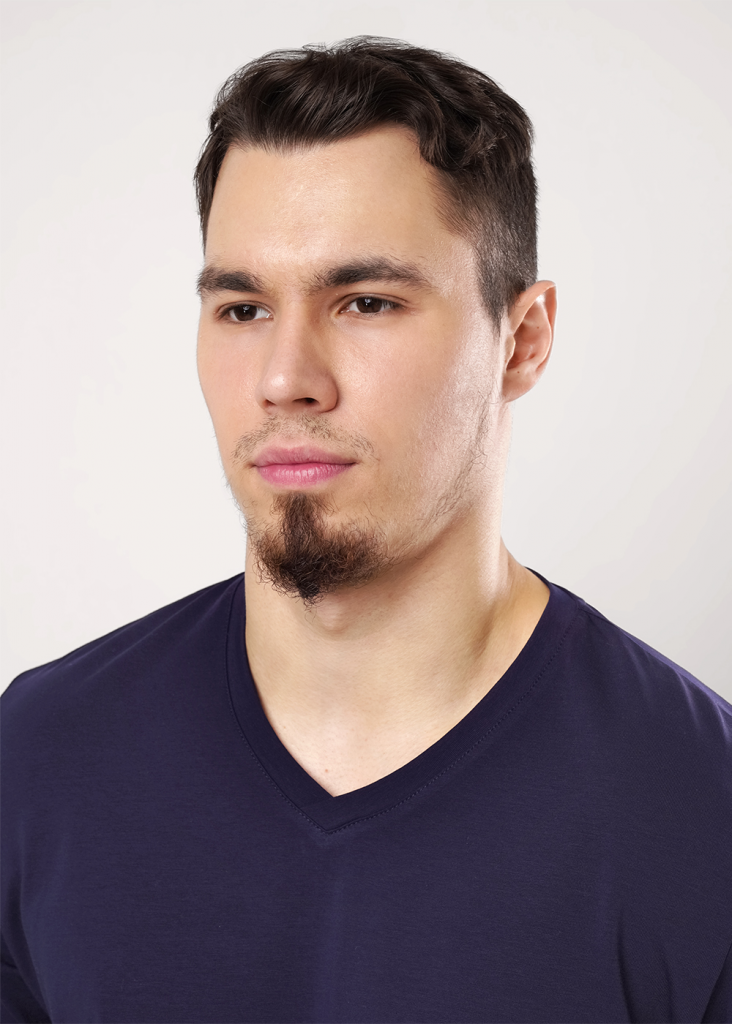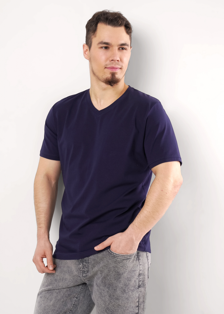 Фуфайка базовой посадки, v-образный вырез горловины, короткий рукав.