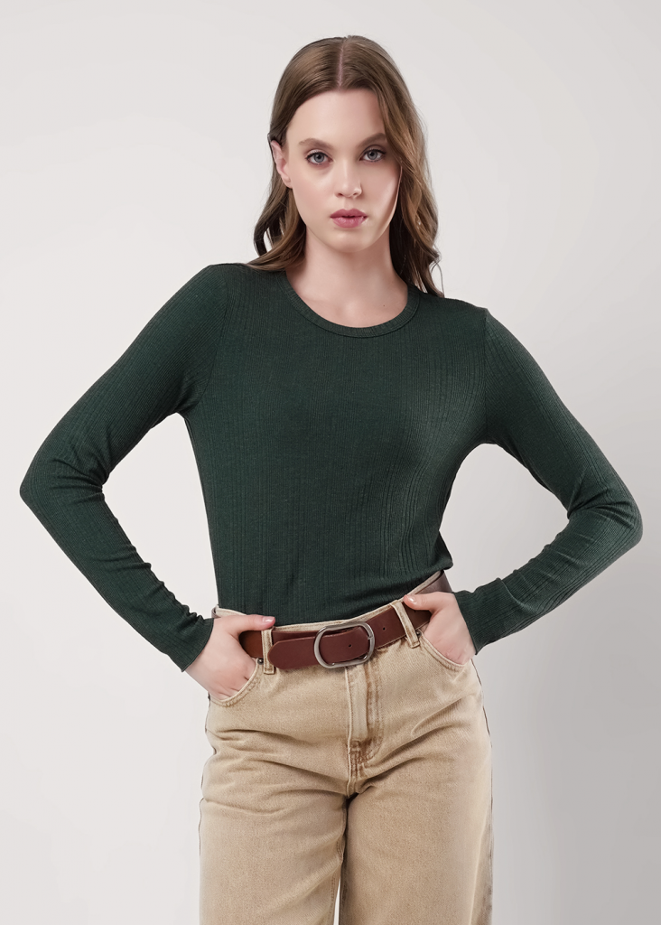 Фуфайка из вискозного трикотажного полотна кашкорсе с эластаном. Округлая горловина с окантовкой. Длинный втачной рукав. По низу рукава и изделия -мелкий оверлок.