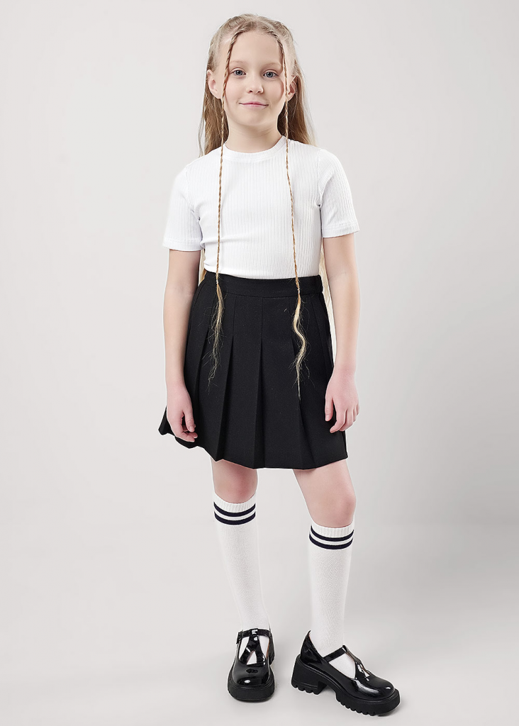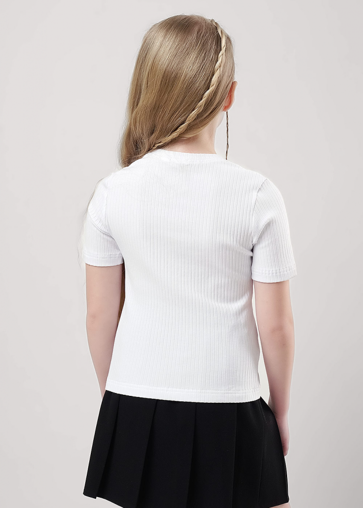 Базовая футболка из лапши станет отличным дополнением к вашему гардеробу! Комфортная посадка по фигуре, актуальный объём и практичная цветовая гамма- то, что нужно для создания повседневного школьного образа и отличного настроения!
