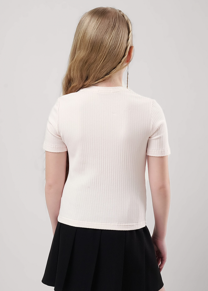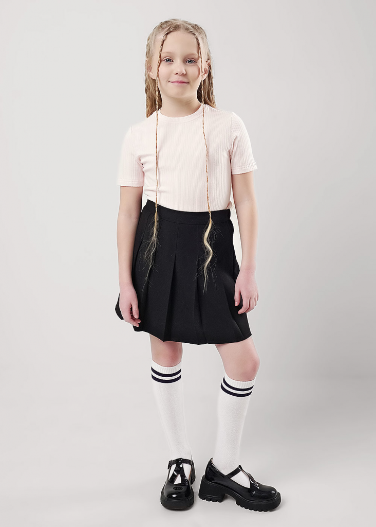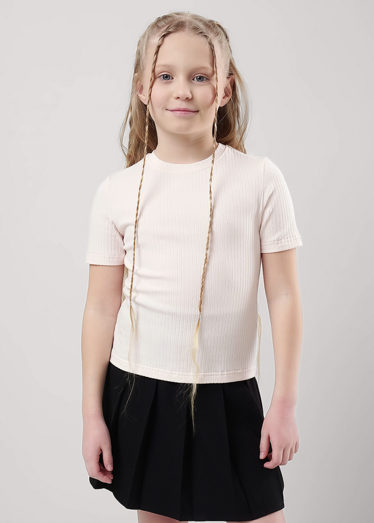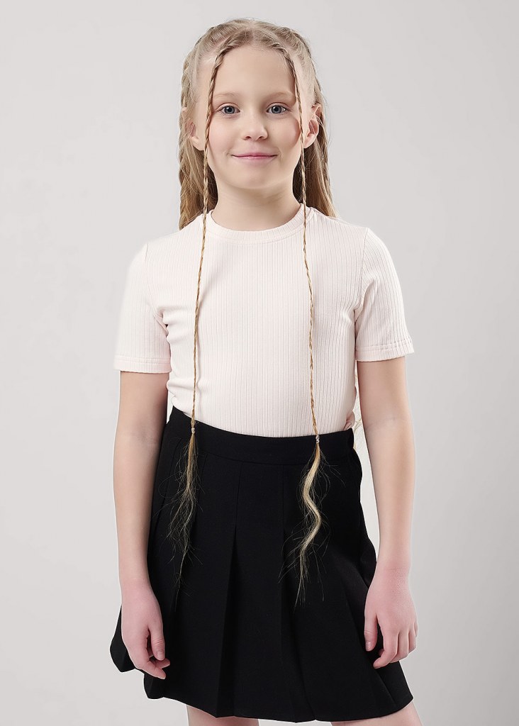 Базовая футболка из лапши станет отличным дополнением к вашему гардеробу! Комфортная посадка по фигуре, актуальный объём и практичная цветовая гамма- то, что нужно для создания повседневного школьного образа и отличного настроения!