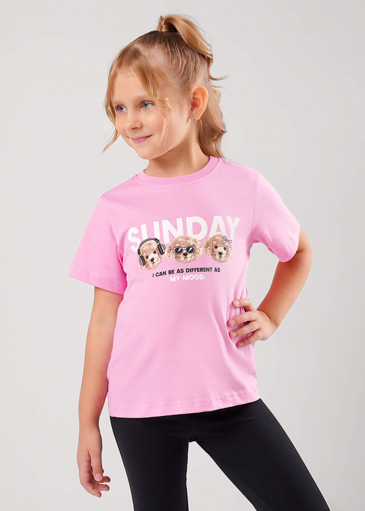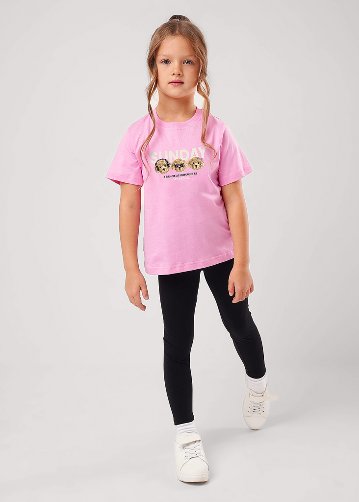 Базовая футболка из 100% хлопка- незаменимая вещь в гардеробе каждой юной модницы! Качественные материалы, комфортная посадка по фигуре и милый принт!