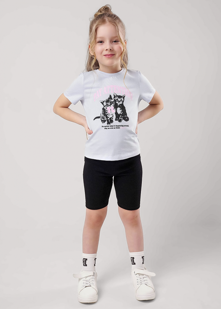 Стильная футболка из хлопкового трикотажа с эластаном- незаменимая вещь в гардеробе! Качественные материалы, комфортная посадка по фигуре и яркие принты!