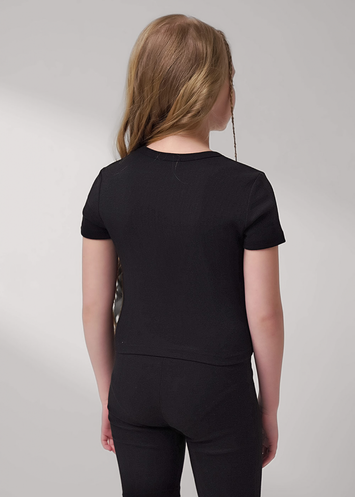 Стильная футболка из эластичного трикотажа- незаменимая вещь в гардеробе! Качественные материалы, комфортная посадка по фигуре и трендовый силуэт! Создавай стильные образы, сочетая футболку с брюками или леггинсами из новой коллекции!