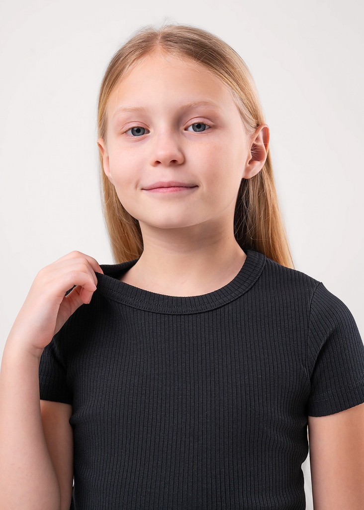 Стильная малообъемная футболка из лапши станет отличным дополнением к твоему гардеробу. Модель прекрасно сочетается с брюками из новой коллекции. Составляй клевые стильные образы и будь в тренде!