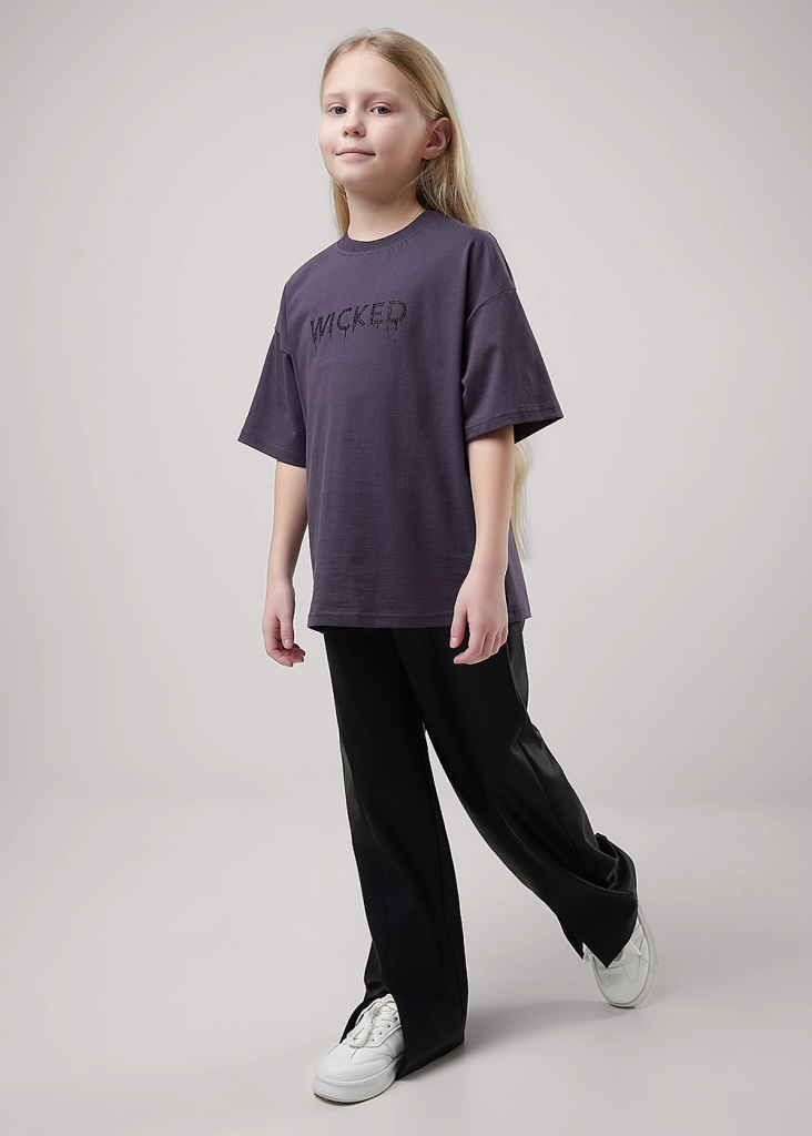 Супер оверсайз силуэт хлопковой футболки - тренд сезона! Фишка -стильные термостразы. Эластичная горловина, комфортная посадка. Сочетай футболку с любимыми широкими брюками и будь на стиле!
