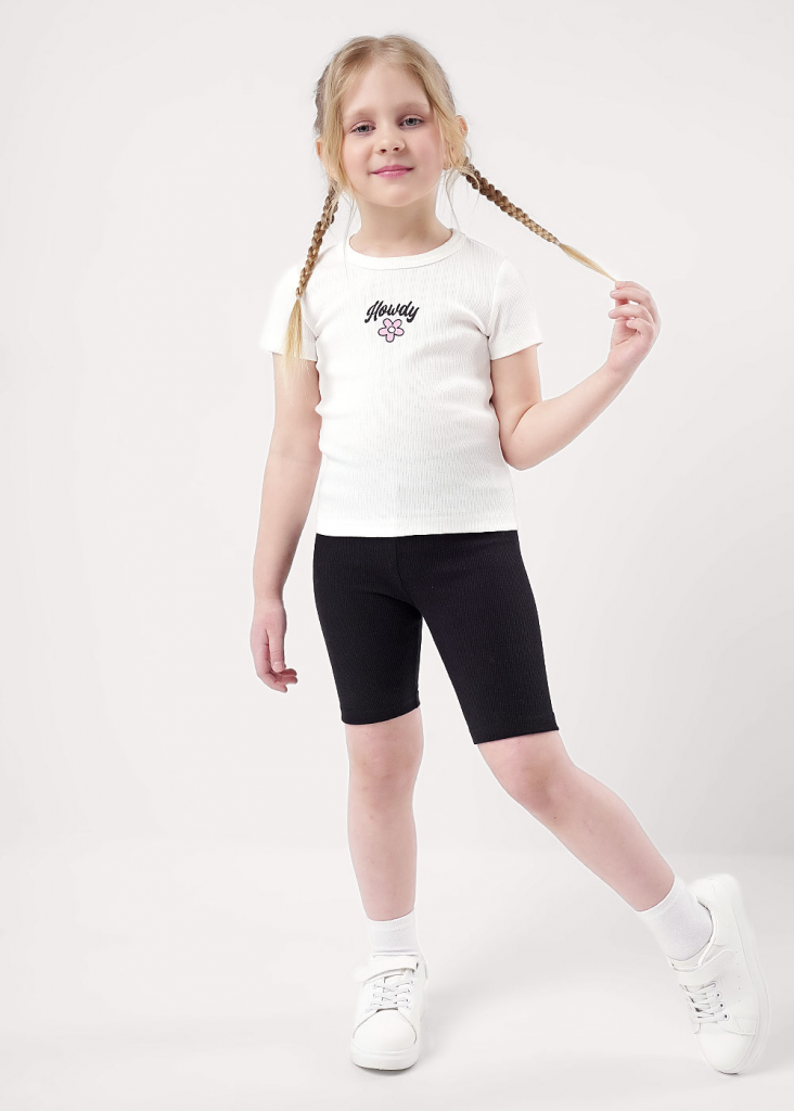 Стильная футболка из лапши станет отличным дополнением к твоему гардеробу. Модель прекрасно сочетается с велосипедками и шортами новой коллекции.