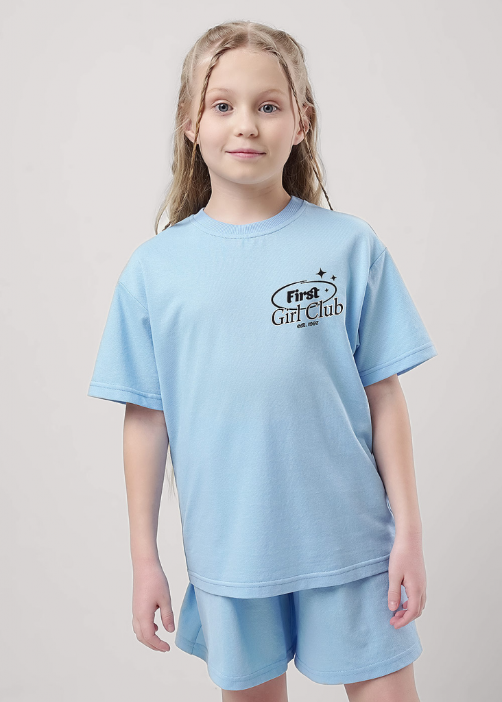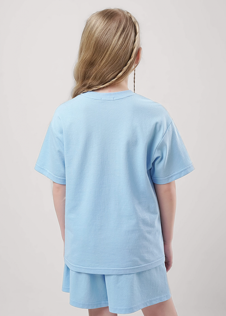 Стильная футболка из фактурного пике прекрасно дополнит твой гардероб. Модель свободного покроя дополнена эластичной горловиной и лаконичным принтом. Создавай стильные яркие образы, сочетая модель с шортами или брюками из новой коллеции!