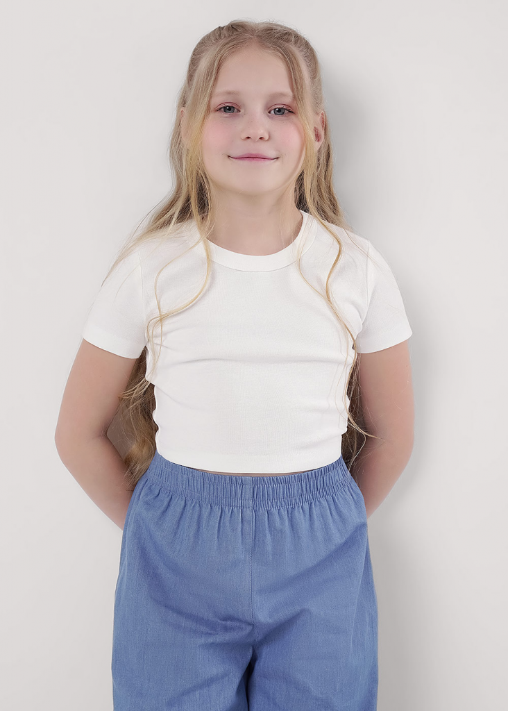 Стильная укороченная футболка из рибаны станет отличным дополнением к твоему гардеробу. Облегающая посадка прекрасно сочетается с брюками или шортами из новой коллекции. Составляй клевые стильные образы и будь в тренде!