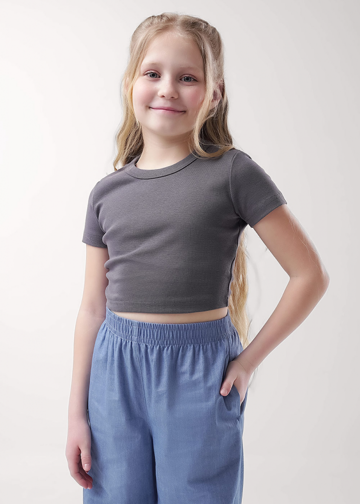 Стильная укороченная футболка из рибаны станет отличным дополнением к твоему гардеробу. Облегающая посадка прекрасно сочетается с брюками или шортами из новой коллекции. Составляй клевые стильные образы и будь в тренде!