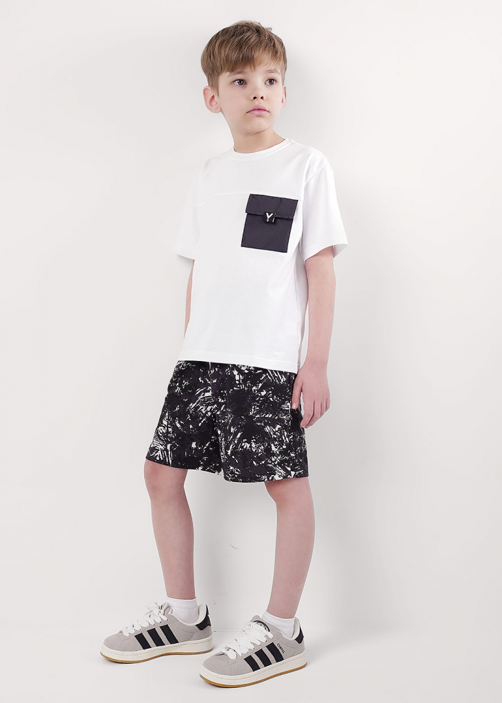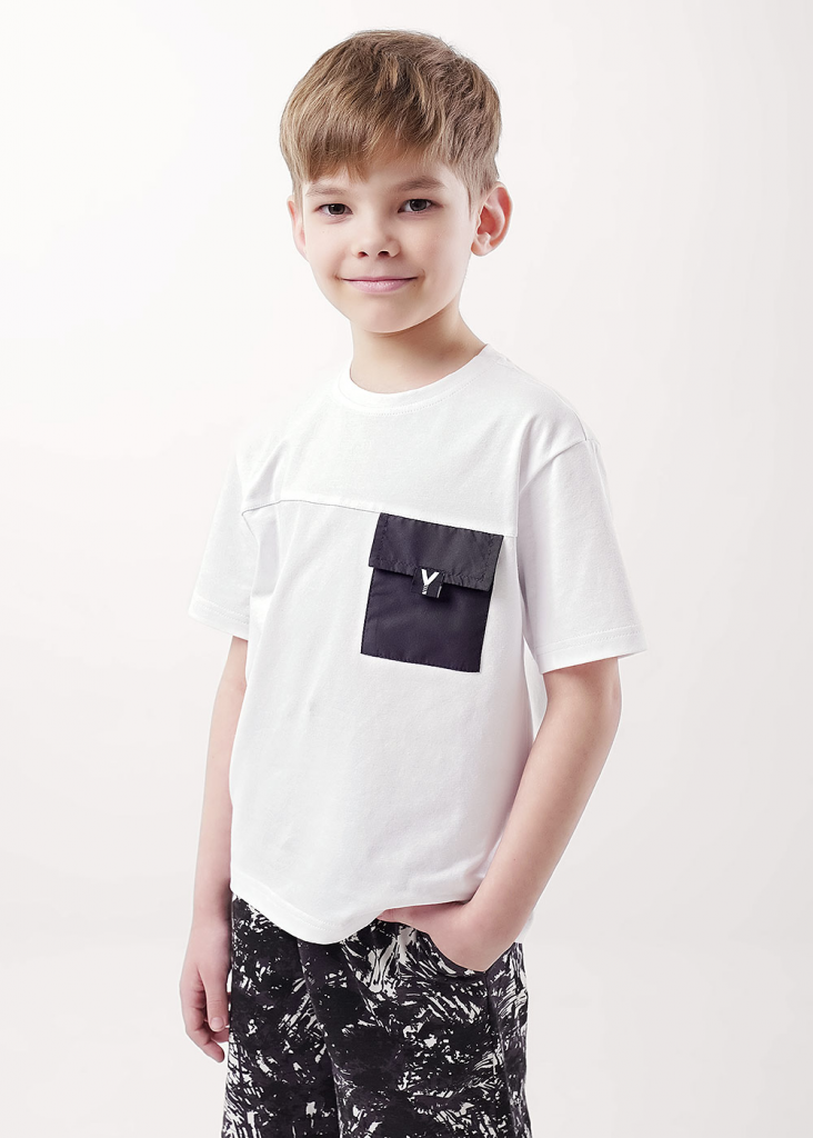 Оригинальная футболка умеренного обьема из эластичного хлопка . По центру переда рез и накладной функциональный карман из плащевой ткани с клапаном. Такая футболка отлично замиксуется с любыми шортами из коллекции.