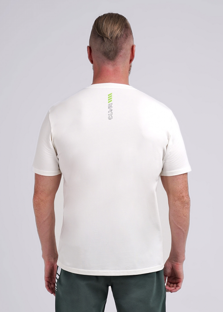 Футболка из дышащего хлопкового полотна с округлой горловиной. Модель с абстрактно-шрифтовым дизайнерским принтом. Отличный вариант для образа в спортивном стиле.