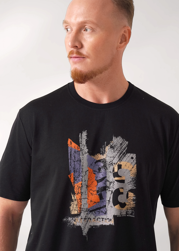 Футболка увеличенного объёма с круглой горловиной из хлопкового полотна. Изделие дополнено имиджевым принтом. Данная модель прекрасно впишется в любой гардероб и составит образ с брюками или джинсами.