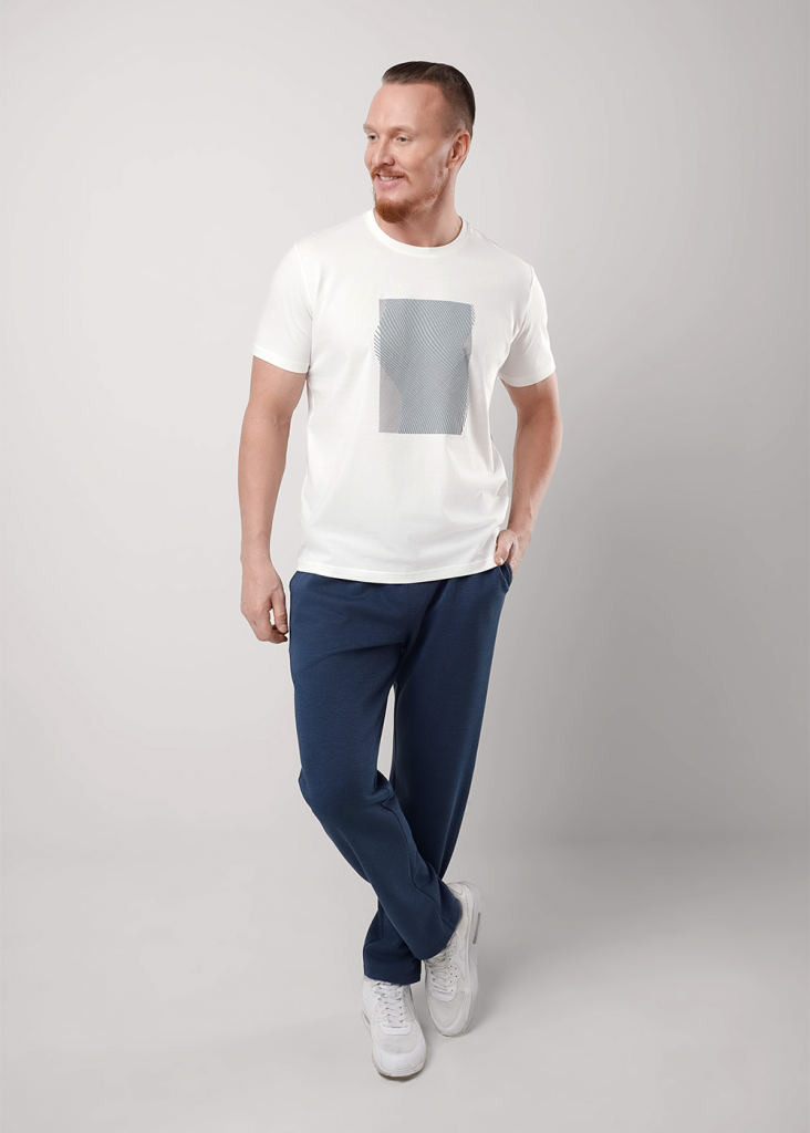 Стильная мужская футболка с круглым вырезом горловины и коротким втачным рукавом. Модель выполнена из приятного хлопкового полотна, дополнена имиджевой фурнитурой и графичным принтом спереди. Отлично подойдет для прогулок и встреч с друзьями.