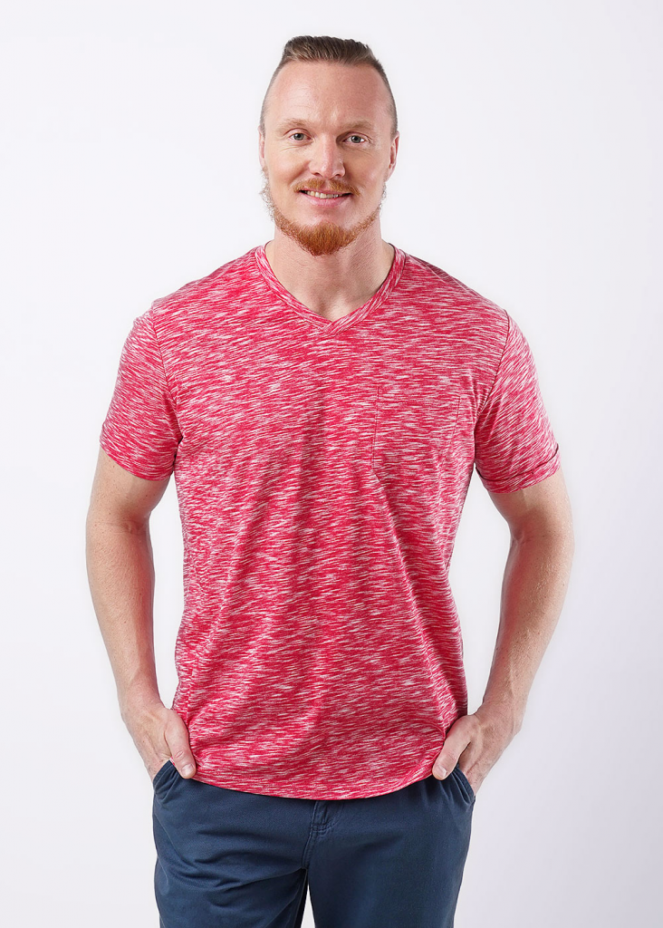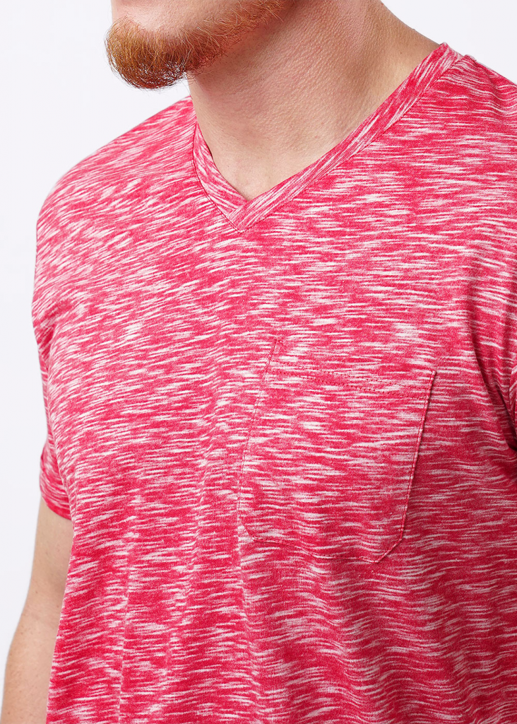 Стильная футболка с V-образным вырезом горловины из дышашего хлопкового полотна (флам). Модель дополняет акцентный карман с принтом и имиджевая фурнитура. Отлично подходит для прогулок и встреч с друзьями.