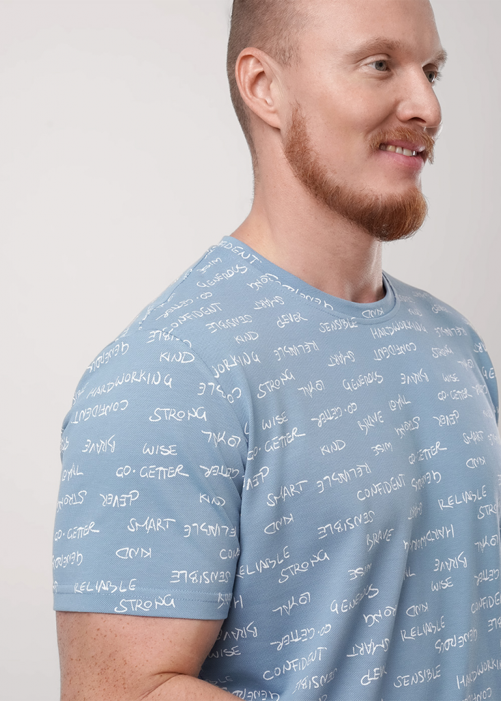 Футболка мужская с круглым вырезом горловины, поясом и коротким втачным рукавом из фактурного полотна "пике". Изделие дополняет имиджевая фурнитура. Подойдет к любым брюкам или джинсам.