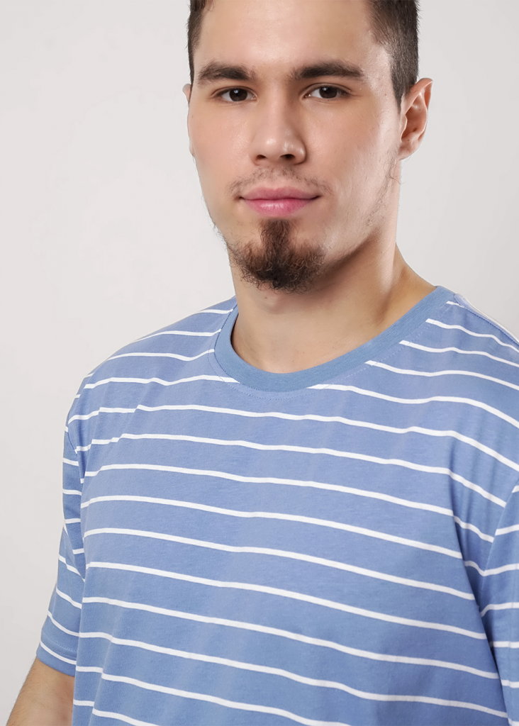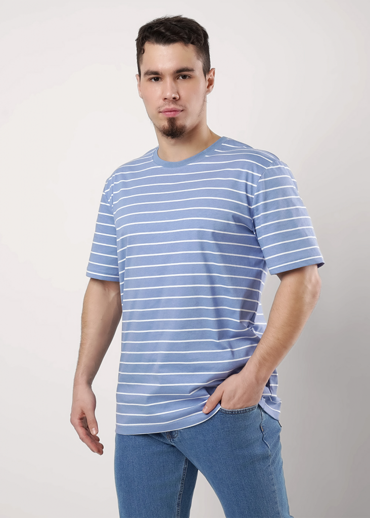 Мужская футболка увеличенного объема из дышащего хлопкового полотна с круглой горловиной и коротким рукавом. Яркость данной модели добавляет набивка в полоску и имиджевая фурнитура. Отличное дополнение к джинсам.