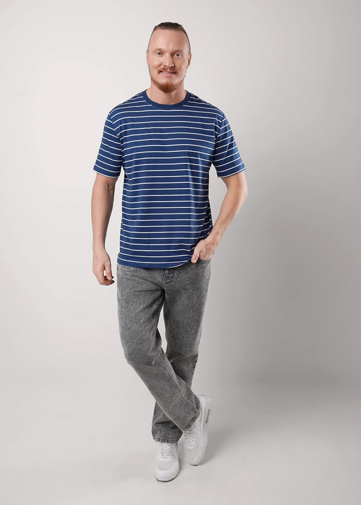 Мужская футболка увеличенного объема из дышащего хлопкового полотна с круглой горловиной и коротким рукавом. Яркость данной модели добавляет набивка в полоску и имиджевая фурнитура. Отличное дополнение к джинсам.