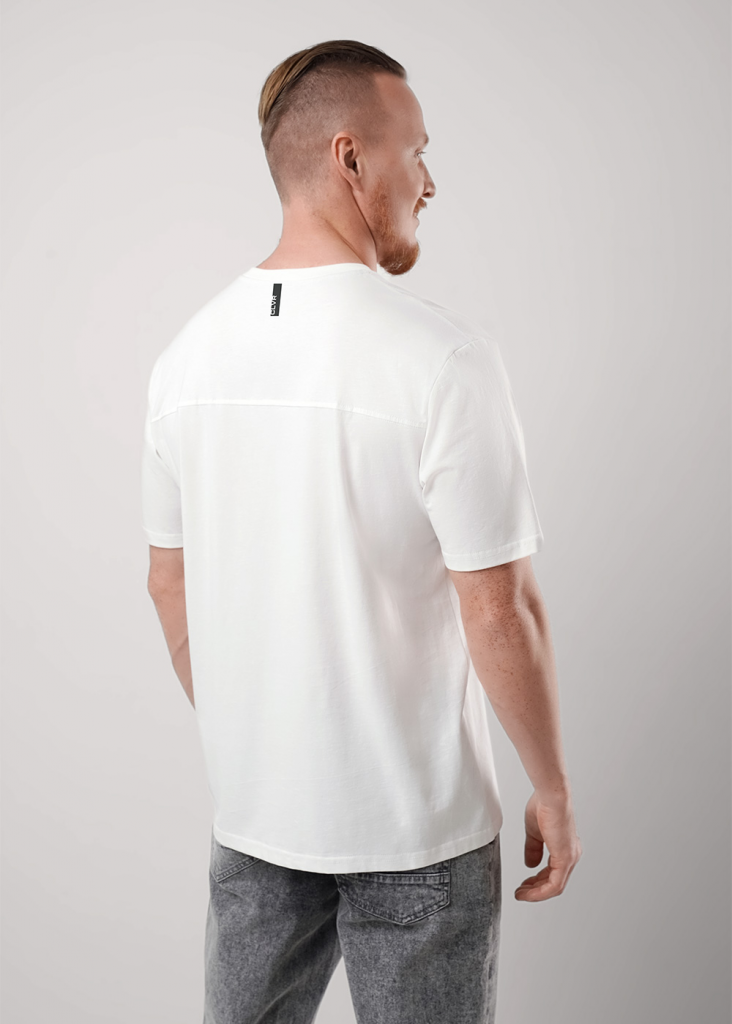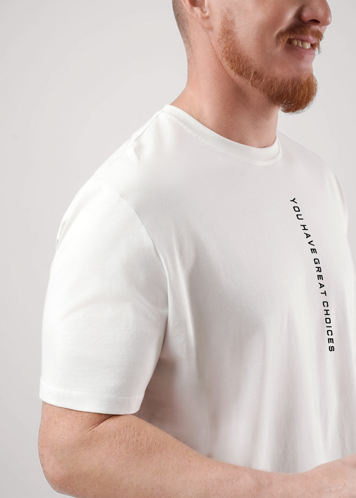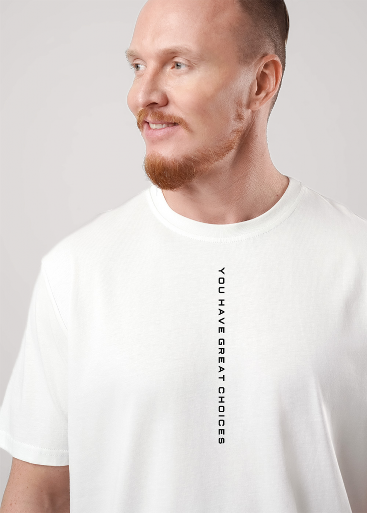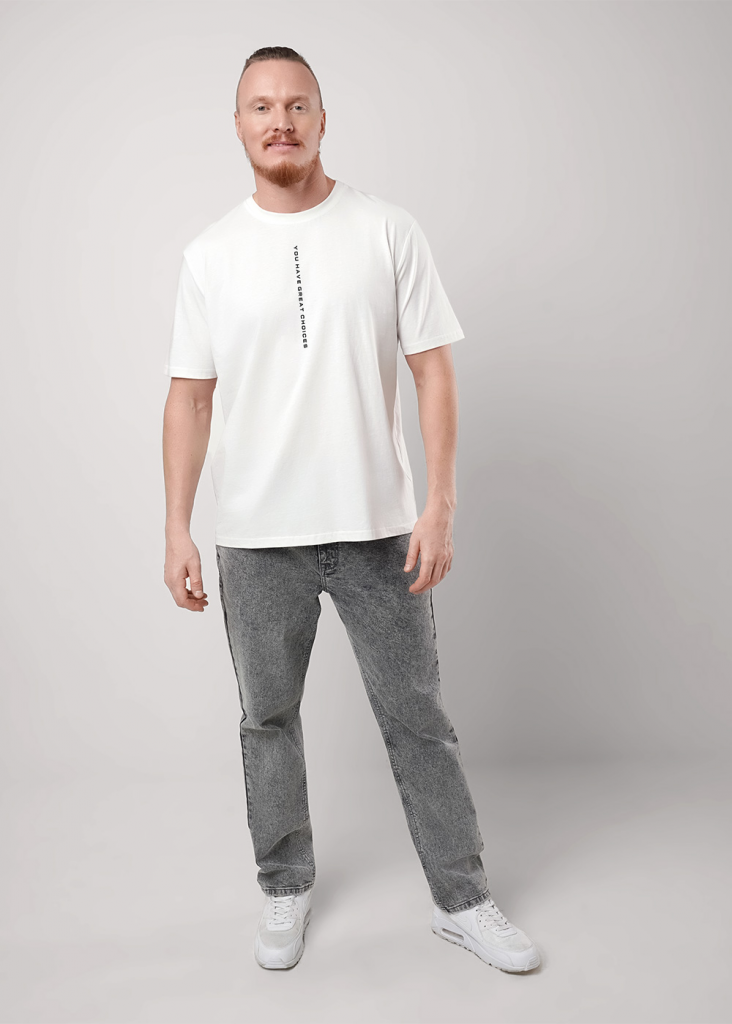 Футболка увеличенного объема с круглой горловиной из хлопкового полотна. Модель дополнена шрифтовым принтом и декоративным резом по спинке. Отлично смотрится с брюками или джинсами.