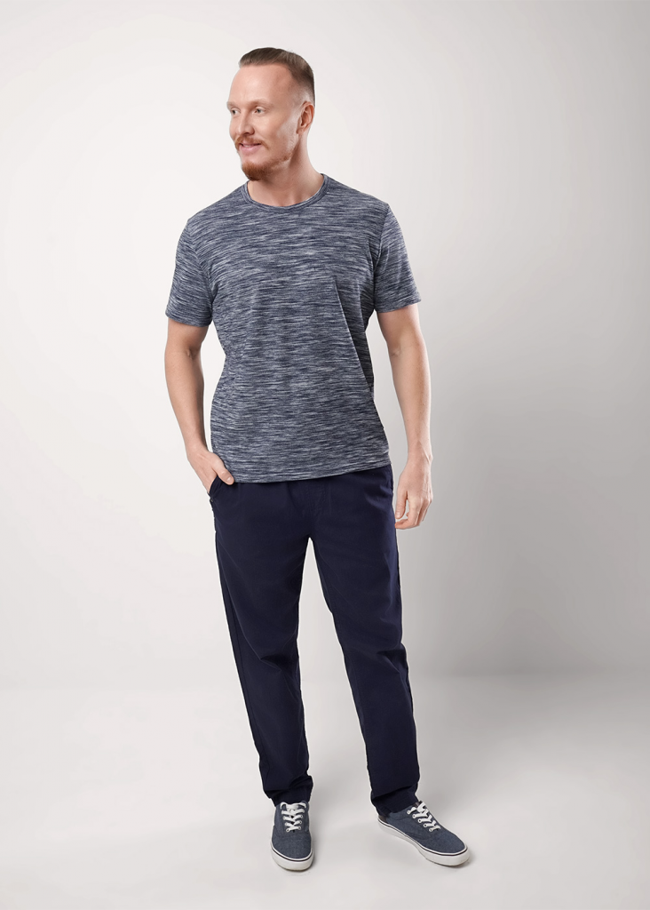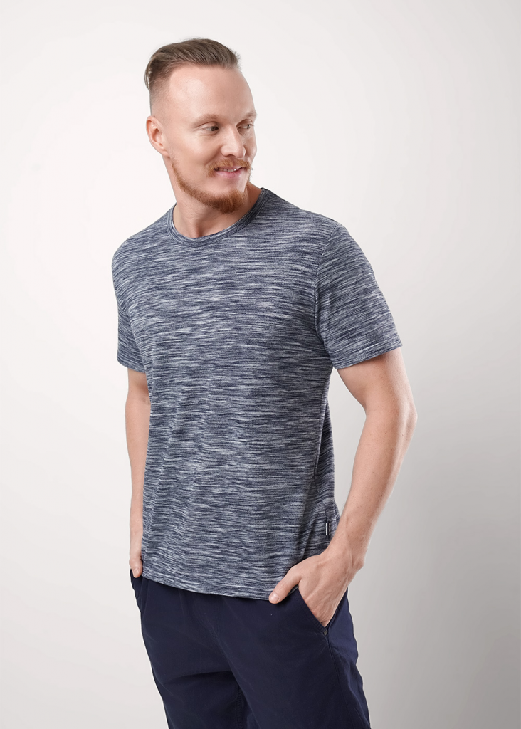 Футболка мужская из фактурного полотна с эффектом ряби. Модель с коротким рукавом, придает комфорт и удобство на весь день. Присутствует имиджевая фурнитура.
