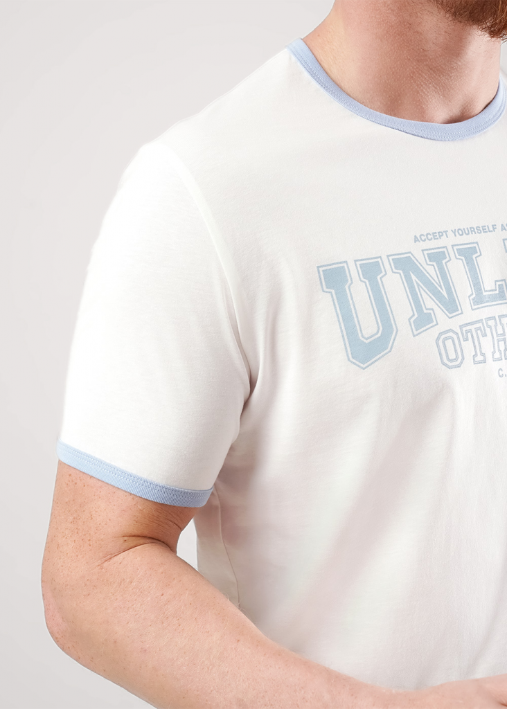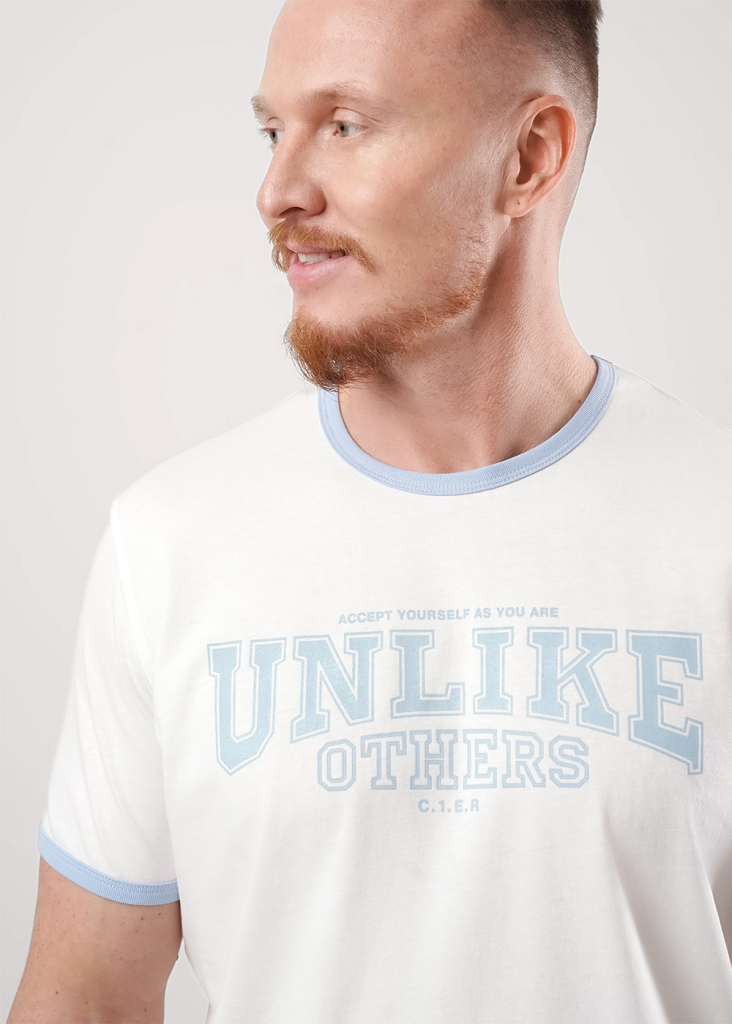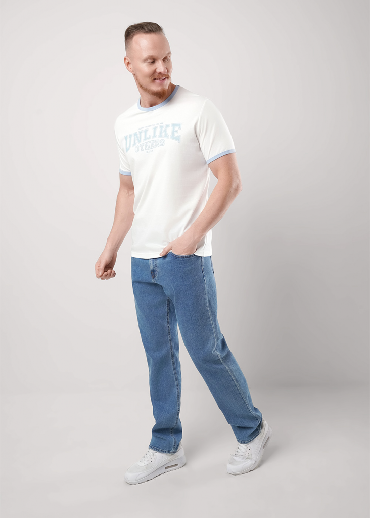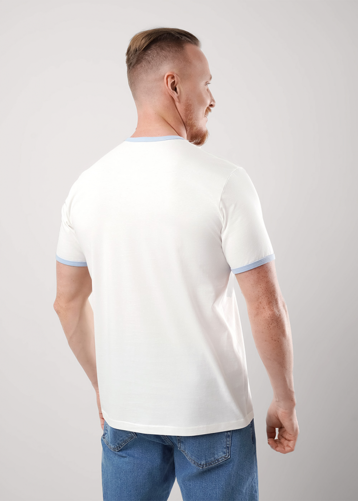 Футболка мужская из дышащего хлопкового полотна. Модель с контрастным круглым вырезом горловины и манжетами. Прекрасно сочетается с джинсами или шортами. Дополнена принтом.