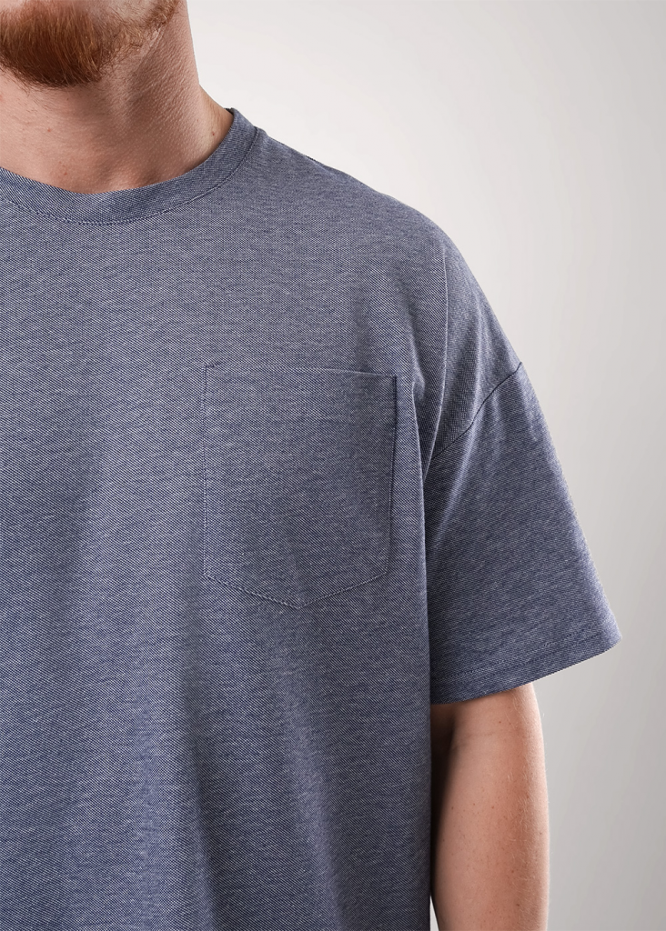 Футболка мужская с круглым вырезом горловины из трикотажного фактурного полотна "пике". Изделие дополняет накладной карман на груди. Отлично смотрится в комплекте с шортами или джинсами.