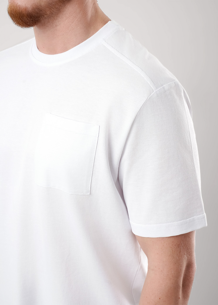 Футболка мужская с круглым вырезом горловины из хлопкового фактурного полотна "вафля". Футболку дополняет карман по груди и боковые разрезы. Отлично подойдет для прогулок и встреч с друзьями.