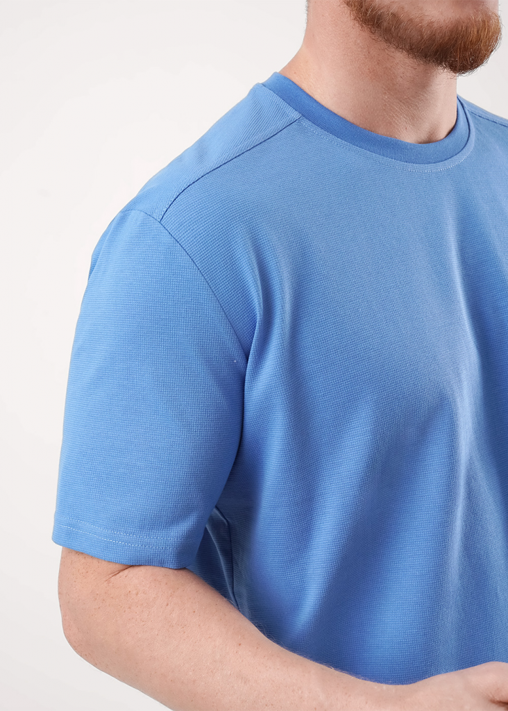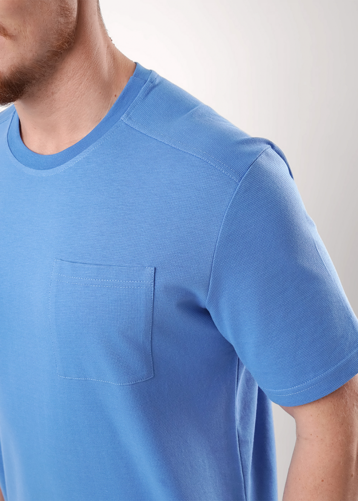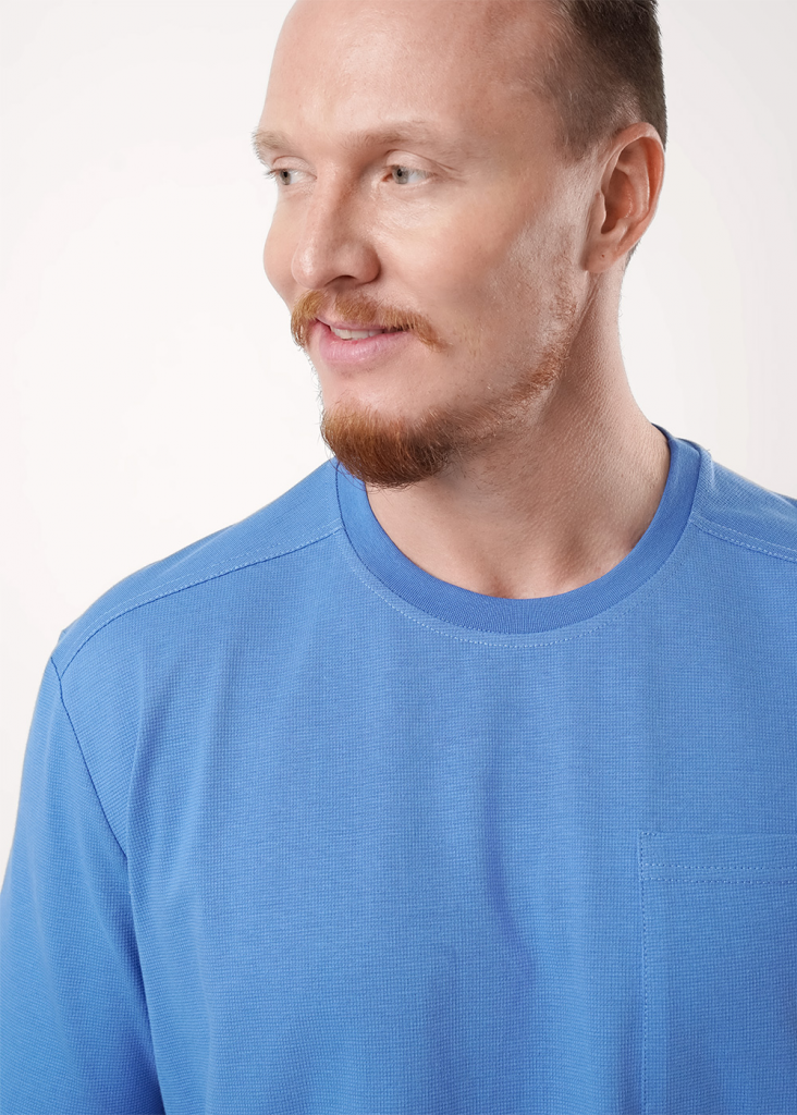 Футболка мужская с круглым вырезом горловины из хлопкового фактурного полотна "вафля". Футболку дополняет карман по груди и боковые разрезы. Отлично подойдет для прогулок и встреч с друзьями.