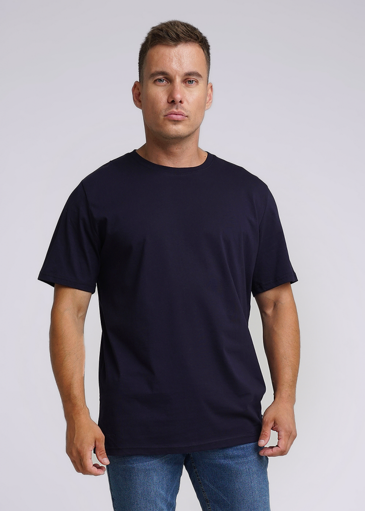 Базовая футболка свободного кроя с круглым вырезом горловины и коротким рукавом. Модель выполнена из 100% дыщащего хлопкового полотна. Универсальная вещь мужского гардероба для носки на каждый день.