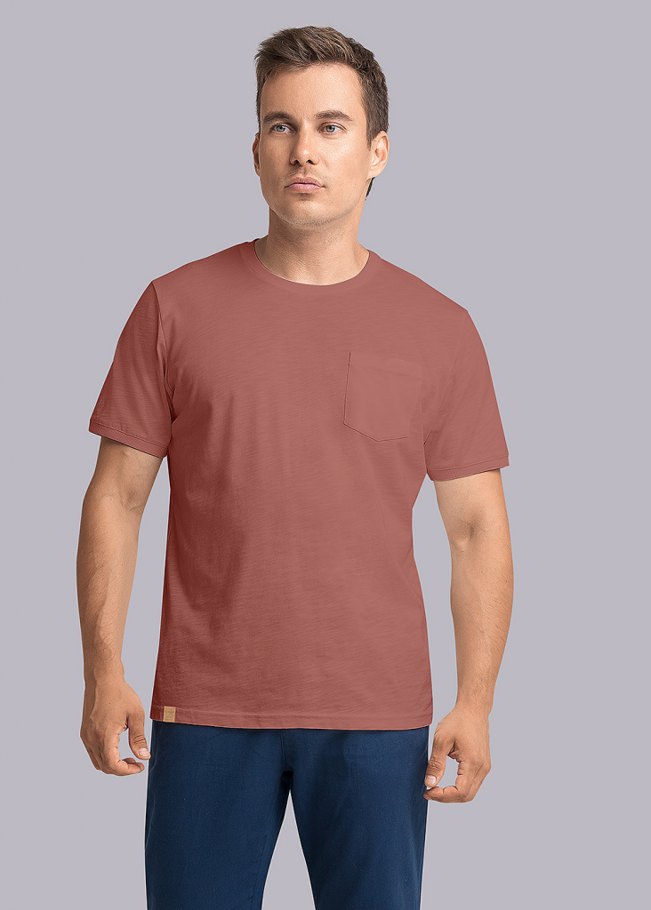 Футболка мужская с округлой горловиной, коротким втачным рукавом и карманом. Данная модель прекрасно комбинируется с джинсами или шортами. Отличное решение на тёплое время года. Прекрасно подойдёт для прогулок с друзьями или поездки на отдых.